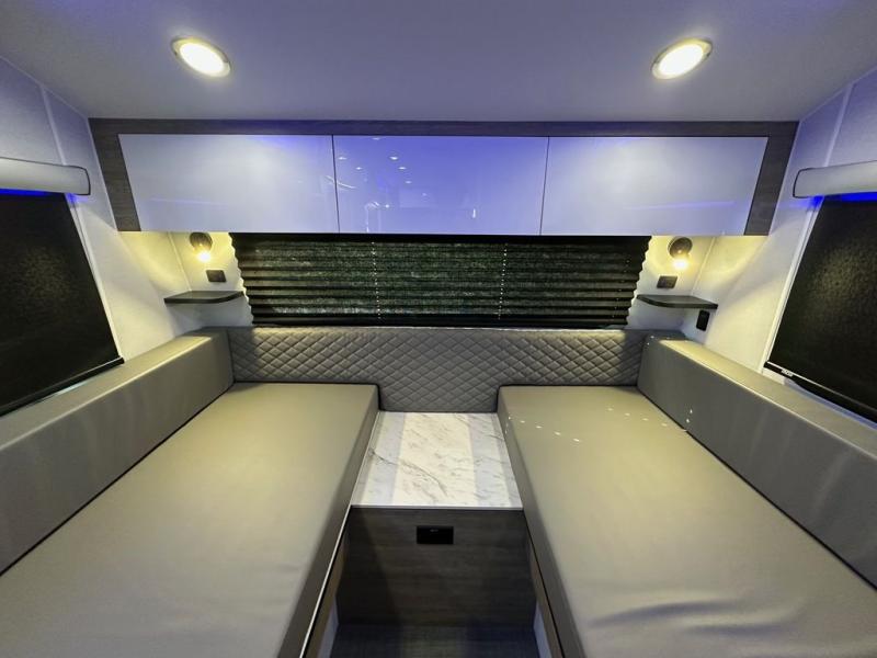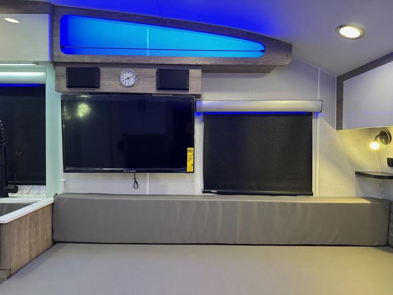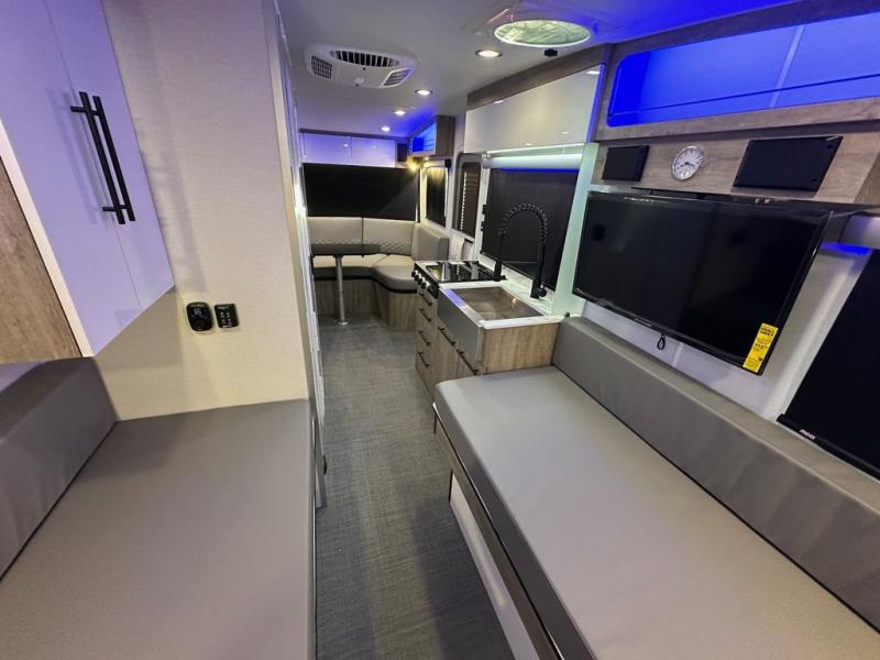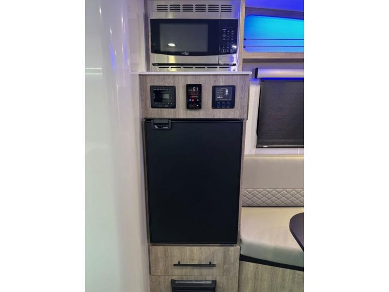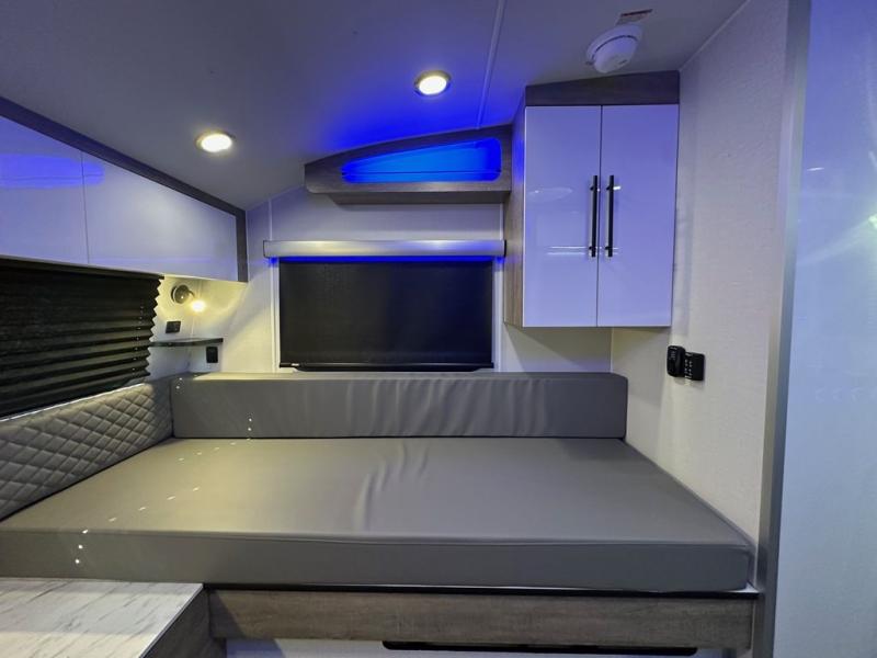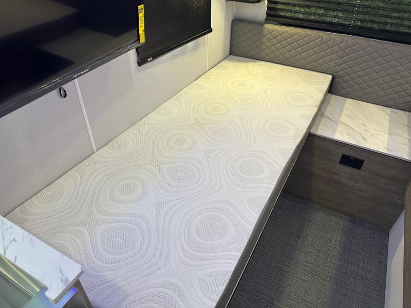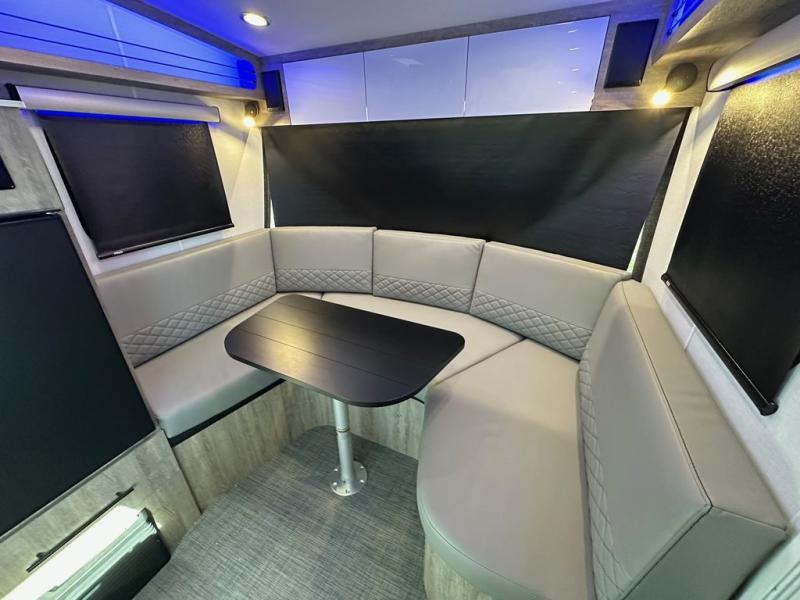 With any Sol travel trailer by inTech RV you will find strong, durable construction consisting of lightweight aluminum that is easier to tow and resists rust, water, and dents. The Tilt-Forward Design creates more space inside so you can stretch out, and the panoramic windshield gives a great view of the mountains, ocean, or forest! The elegant interior features tinted windows with shades, Infinity woven flooring, and a stainless steel cooktop and microwave. You will stay comfortable year around since these models include a 15K BTU A/C and a 16K BTU furnace.