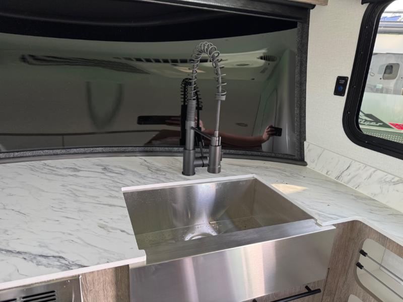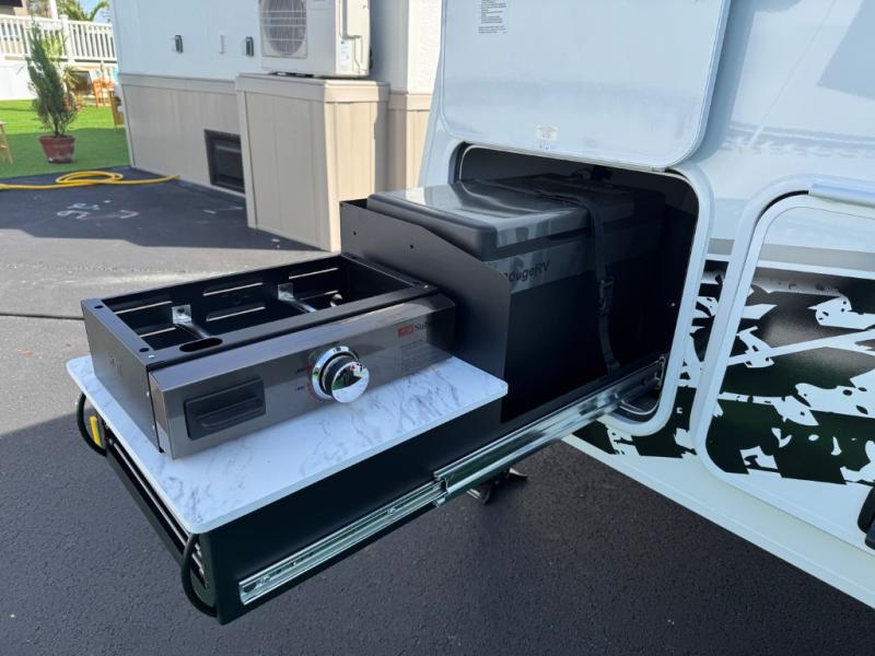 With any Sol travel trailer by inTech RV you will find strong, durable construction consisting of lightweight aluminum that is easier to tow and resists rust, water, and dents. The Tilt-Forward Design creates more space inside so you can stretch out, and the panoramic windshield gives a great view of the mountains, ocean, or forest! The elegant interior features tinted windows with shades, Infinity woven flooring, and a stainless steel cooktop and microwave. You will stay comfortable year around since these models include a 15K BTU A/C and a 16K BTU furnace. The optional Rover Package can also be added that features rugged decals, off-road tires with a 3" lift, two different color choices to choose from, plus more!
