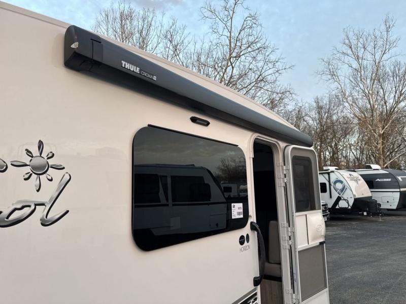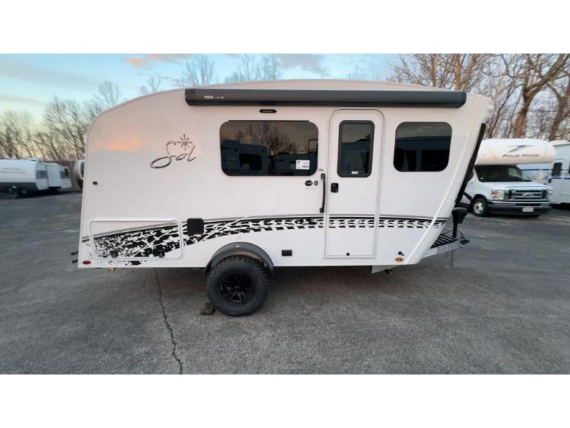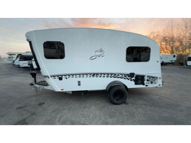 With any Sol travel trailer by inTech RV you will find strong, durable construction consisting of lightweight aluminum that is easier to tow and resists rust, water, and dents. The Tilt-Forward Design creates more space inside so you can stretch out, and the panoramic windshield gives a great view of the mountains, ocean, or forest! The elegant interior features tinted windows with shades, Infinity woven flooring, and a stainless steel cooktop and microwave. You will stay comfortable year around since these models include a 15K BTU A/C and a 16K BTU furnace. When the optional Rover Package is chosen on this model, you'll enjoy rugged decals, a 3" lift, blackout wheels, and more; see dealer for more details!