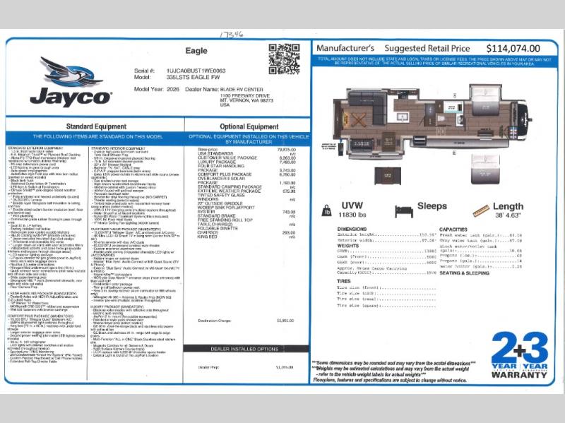 New 2026 Jayco Eagle 335LSTS Fifth Wheel