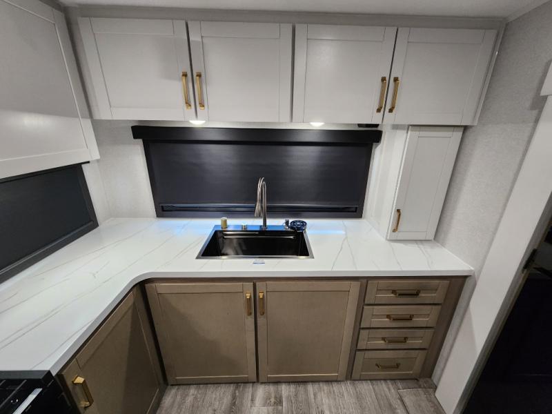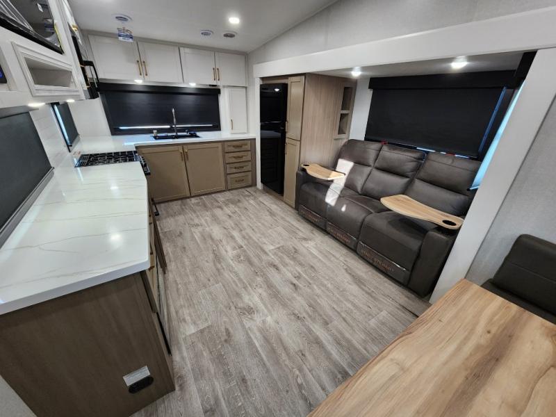 With any Eagle HT fifth wheel or travel trailer by Jayco you will enjoy a smooth drive thanks to the 4 Star Handling Package and MORryde CRE-3000 rubberized suspension. The Customer Value Package includes amenities that are sure to make camping easier than ever, like the 60K on-demand water heater, Keyed-Alike lock system, 15,000 BTU "Whisper Quiet" A/C, and more. Handcrafted door/drawer fronts will make your space feel more like home, along with residential vinyl flooring throughout, GE appliances, and blackout roller shades with reflective side throughout to keep the sun out when you want to sleep in. Each model also includes a NuVo H2O water treatment system with filters included, interior and exterior "Blue Sync" audio connect with MB Quart Sound for your TV and phone, and 100% no floor vents for added comfort and convenience!