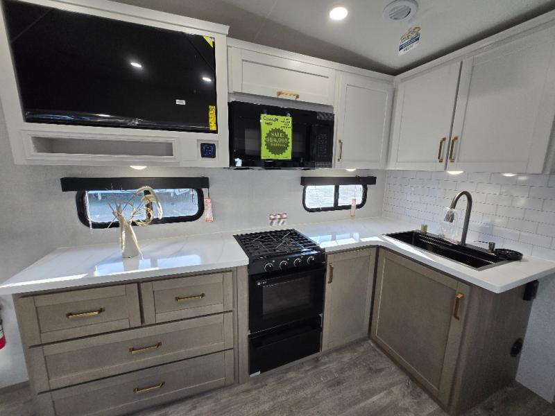 With any Eagle HT fifth wheel or travel trailer by Jayco you will enjoy a smooth drive thanks to the 4 Star Handling Package and MORryde CRE-3000 rubberized suspension. The Customer Value Package includes amenities that are sure to make camping easier than ever, like the 60K on-demand water heater, Keyed-Alike lock system, 15,000 BTU "Whisper Quiet" A/C, and more. Handcrafted door/drawer fronts will make your space feel more like home, along with residential vinyl flooring throughout, GE appliances, and blackout roller shades with reflective side throughout to keep the sun out when you want to sleep in. Each model also includes a NuVo H2O water treatment system with filters included, interior and exterior "Blue Sync" audio connect with MB Quart Sound for your TV and phone, and 100% no floor vents for added comfort and convenience!