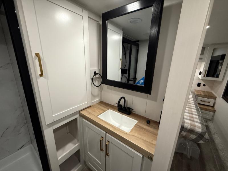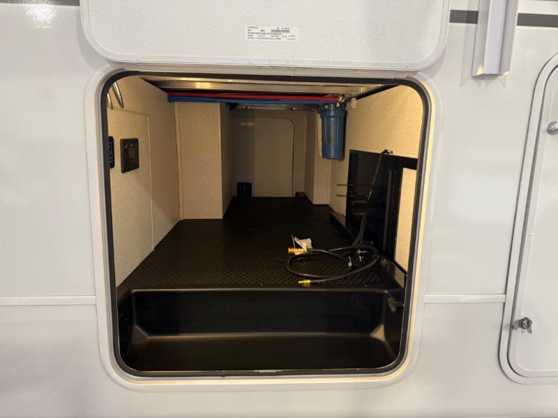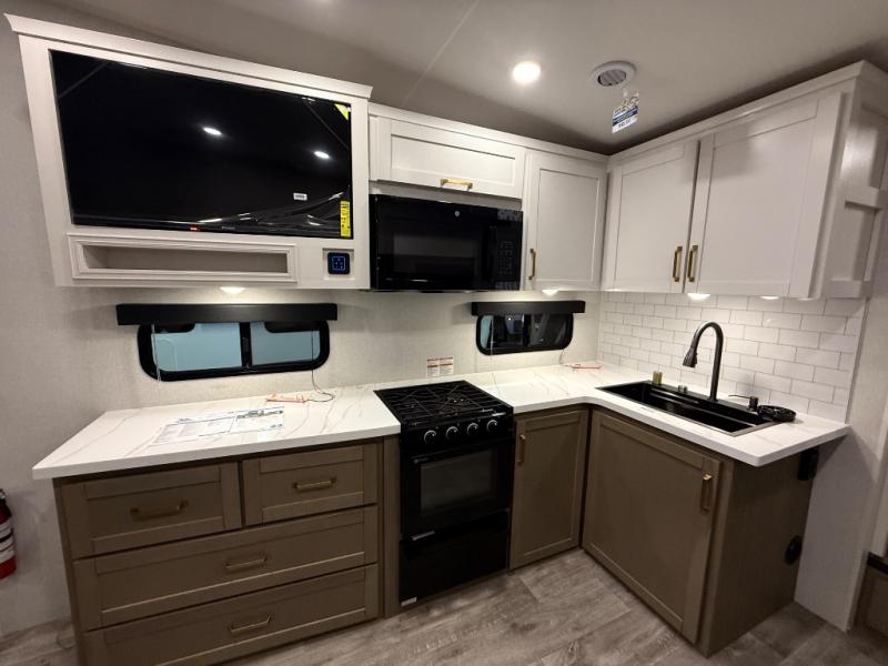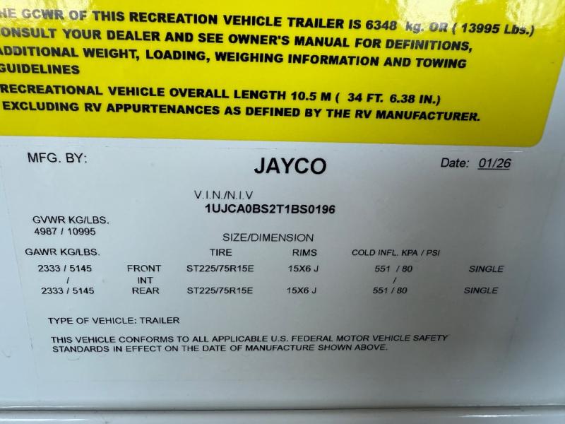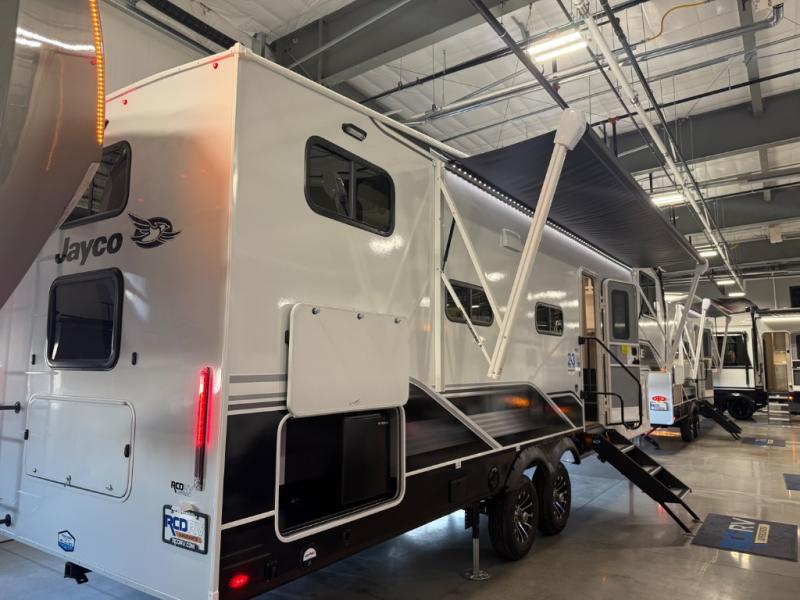 With any Eagle HT fifth wheel or travel trailer by Jayco you will enjoy a smooth drive thanks to the 4 Star Handling Package and MORryde CRE-3000 rubberized suspension. The Customer Value Package includes amenities that are sure to make camping easier than ever, like the 60K on-demand water heater, Keyed-Alike lock system, 15,000 BTU "Whisper Quiet" A/C, and more. Handcrafted door/drawer fronts will make your space feel more like home, along with residential vinyl flooring throughout, GE appliances, and blackout roller shades with reflective side throughout to keep the sun out when you want to sleep in. Each model also includes a NuVo H2O water treatment system with filters included, interior and exterior "Blue Sync" audio connect with MB Quart Sound for your TV and phone, and 100% no floor vents for added comfort and convenience!