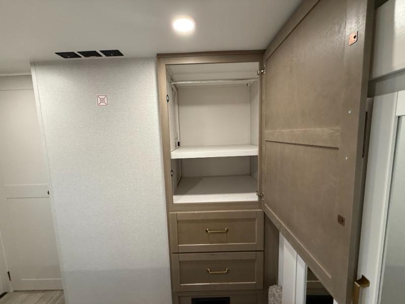 With any Eagle SLE fifth wheel by Jayco, you will enjoy a lighter tow weight, high-end finishes, and the same quality construction you've come to expect from Jayco! There is an Alpha Ply TPO roof membrane, a fully enclosed and heated underbelly, plus Stronghold VBL walls for added durability. There is also a rear 2" towing receiver outside, along with metal slam latch baggage doors, MORryde Step Above entry steps, and a Winegard Air 360 antenna with router prep if you want to stay connected as you camp. Once inside you'll enjoy the handcrafted door/drawer fronts, shower skylight, and residential vinyl flooring throughout with no carpet for an easier clean. The on-demand water heater, 30K BTU furnace, and 15K BTU "Whisper Quiet" A/C will ensure your comfort, and the Overland 1 Solar Package will provide off-grid capabilities!