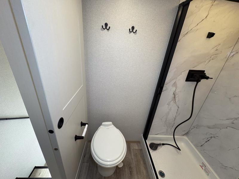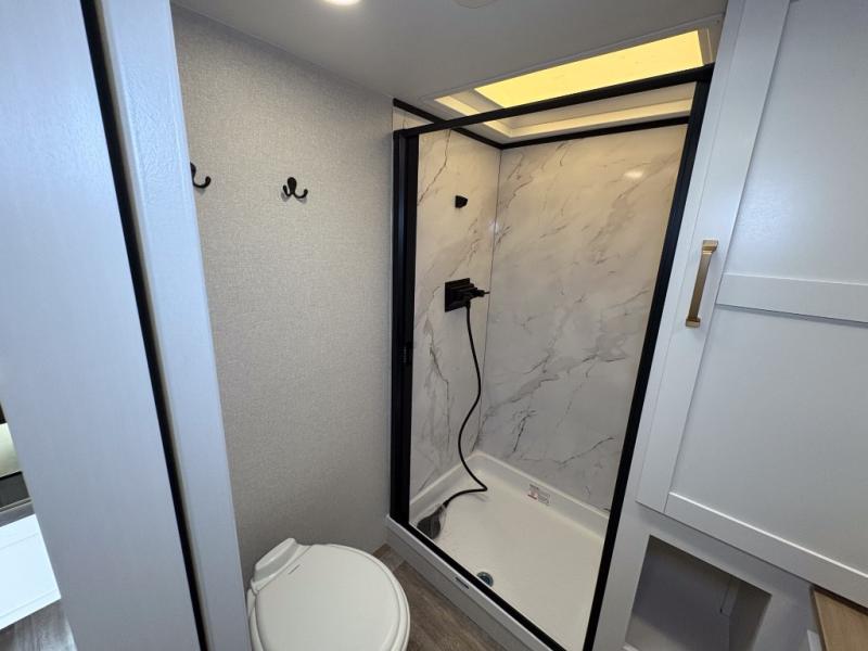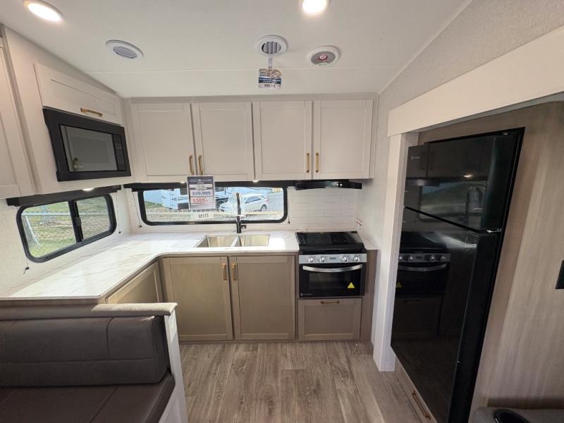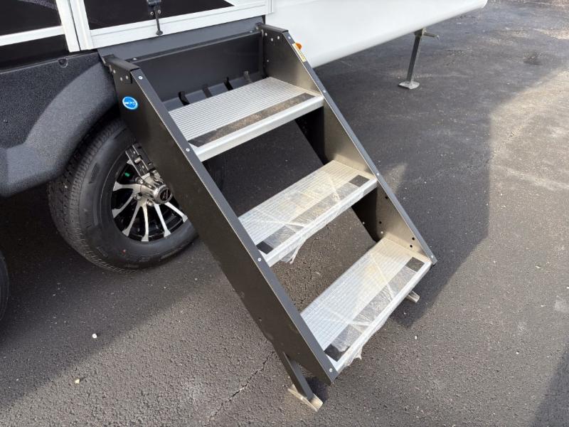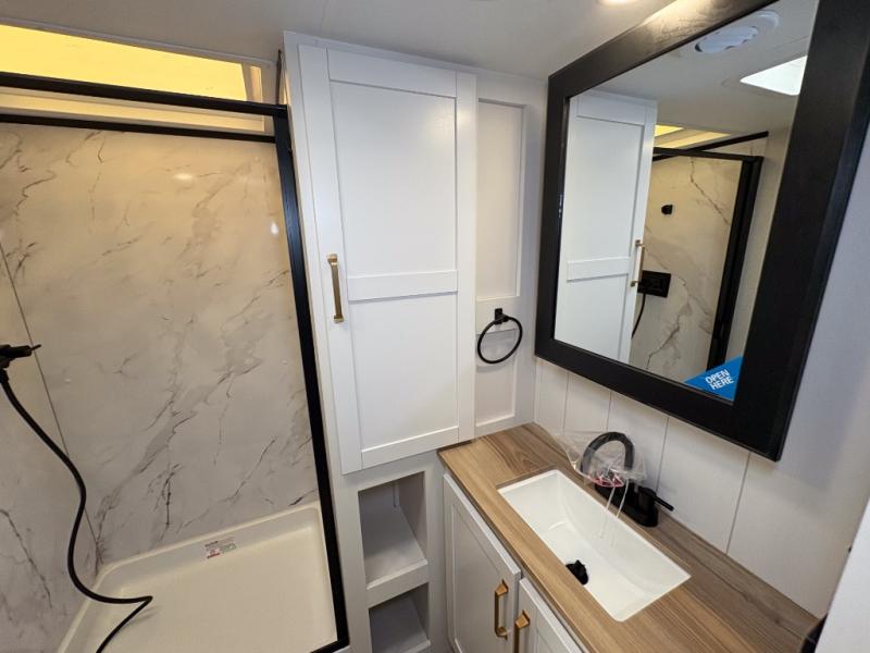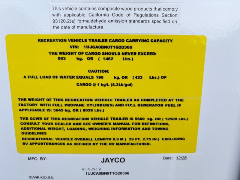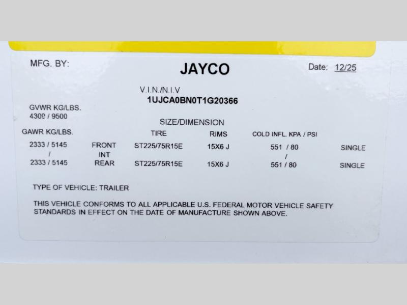With any Eagle SLE fifth wheel by Jayco, you will enjoy a lighter tow weight, high-end finishes, and the same quality construction you've come to expect from Jayco! There is an Alpha Ply TPO roof membrane, a fully enclosed and heated underbelly, plus Stronghold VBL walls for added durability. There is also a rear 2" towing receiver outside, along with metal slam latch baggage doors, MORryde Step Above entry steps, and a Winegard Air 360 antenna with router prep if you want to stay connected as you camp. Once inside you'll enjoy the handcrafted door/drawer fronts, shower skylight, and residential vinyl flooring throughout with no carpet for an easier clean. The on-demand water heater, 30K BTU furnace, and 15K BTU "Whisper Quiet" A/C will ensure your comfort, and the Overland 1 Solar Package will provide off-grid capabilities!