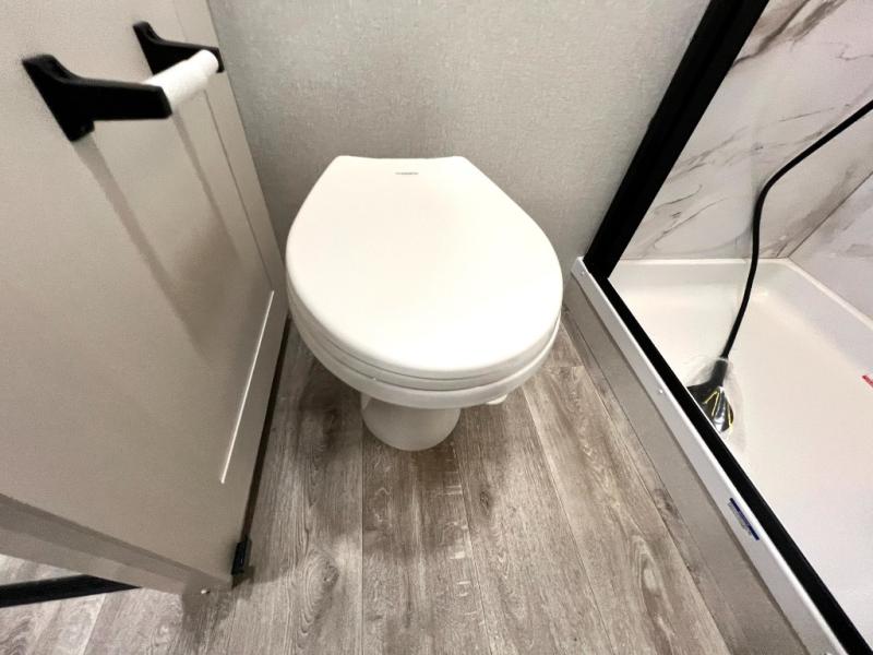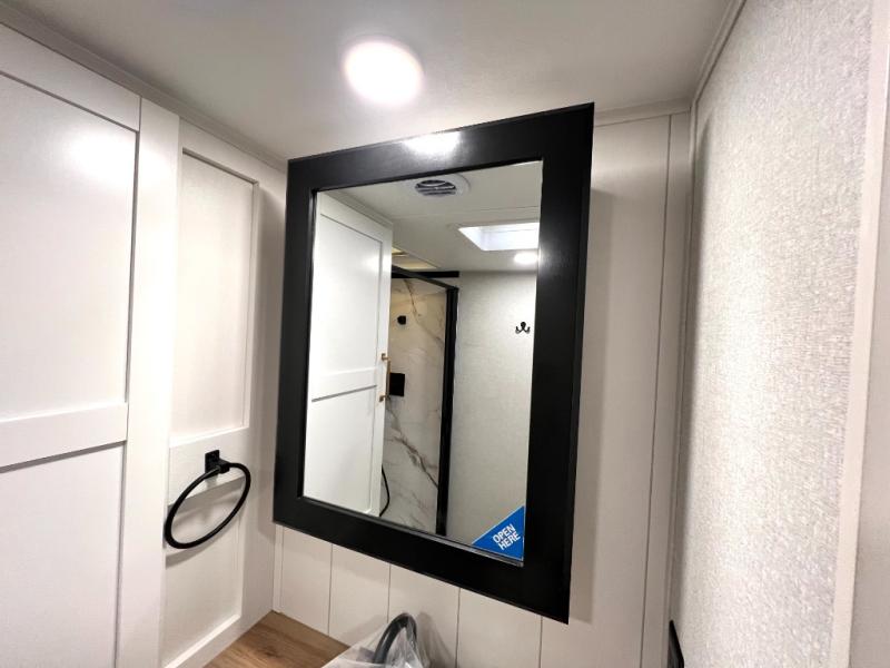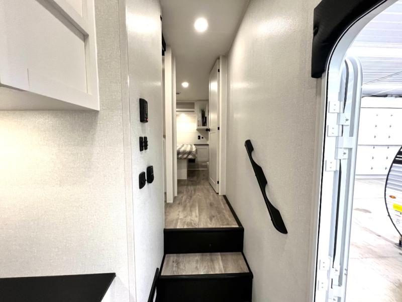 With any Eagle SLE fifth wheel by Jayco, you will enjoy a lighter tow weight, high-end finishes, and the same quality construction you've come to expect from Jayco! There is an Alpha Ply TPO roof membrane, a fully enclosed and heated underbelly, plus Stronghold VBL walls for added durability. There is also a rear 2" towing receiver outside, along with metal slam latch baggage doors, MORryde Step Above entry steps, and a Winegard Air 360 antenna with router prep if you want to stay connected as you camp. Once inside you'll enjoy the handcrafted door/drawer fronts, shower skylight, and residential vinyl flooring throughout with no carpet for an easier clean. The on-demand water heater, 30K BTU furnace, and 15K BTU "Whisper Quiet" A/C will ensure your comfort, and the Overland 1 Solar Package will provide off-grid capabilities!