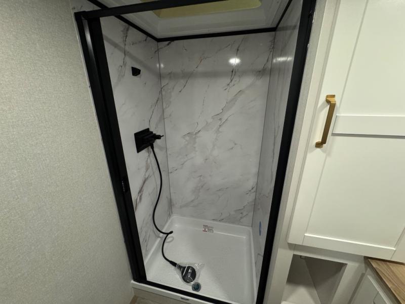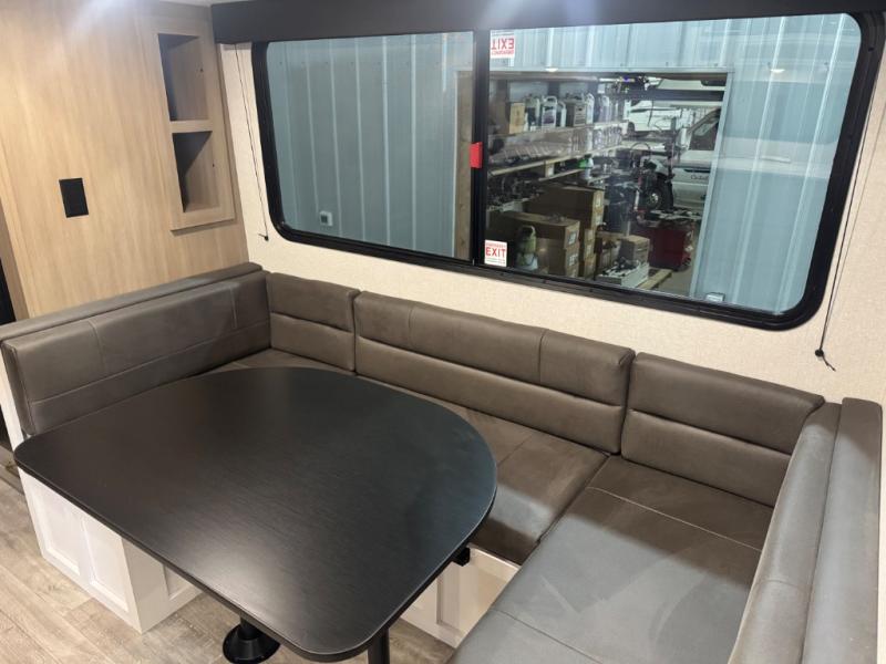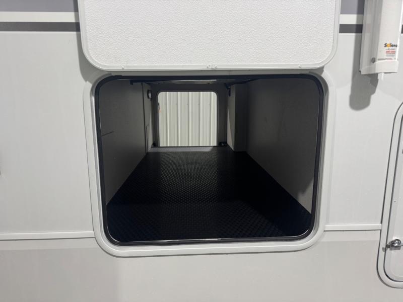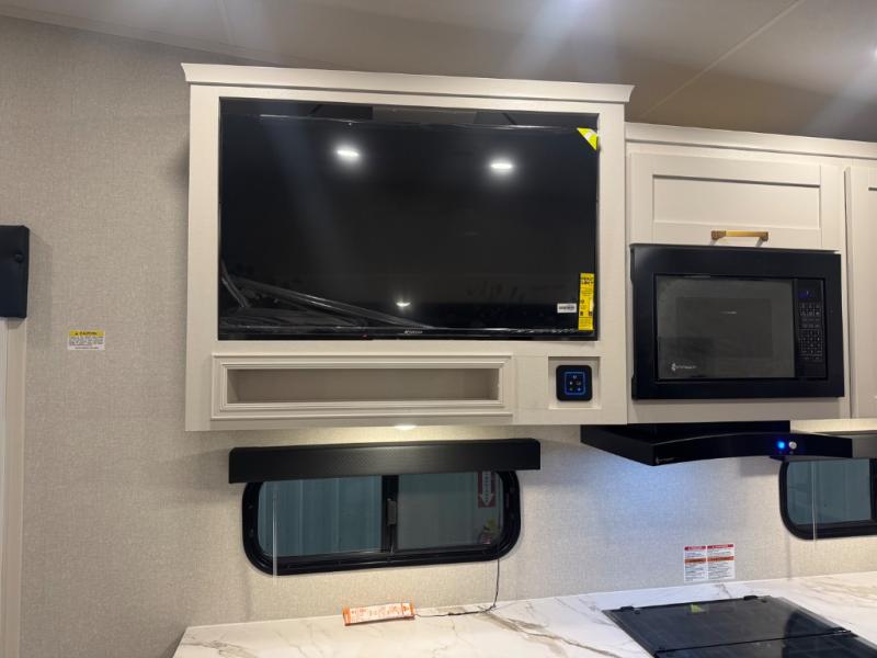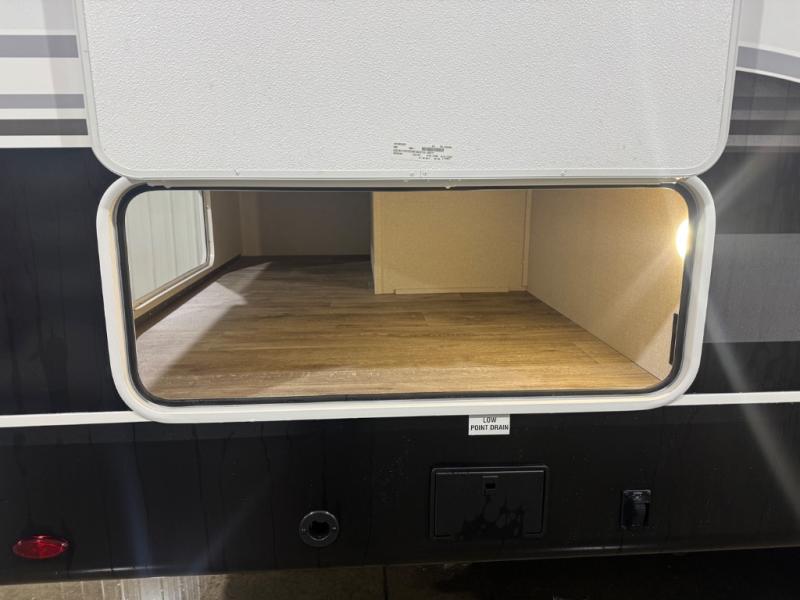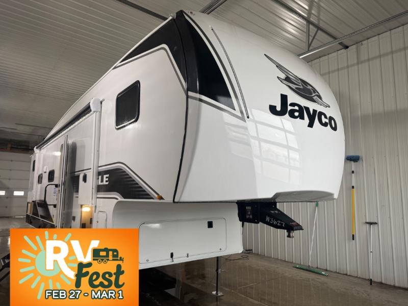 With any Eagle SLE fifth wheel by Jayco, you will enjoy a lighter tow weight, high-end finishes, and the same quality construction you've come to expect from Jayco! There is an Alpha Ply TPO roof membrane, a fully enclosed and heated underbelly, plus Stronghold VBL walls for added durability. There is also a rear 2" towing receiver outside, along with metal slam latch baggage doors, MORryde Step Above entry steps, and a Winegard Air 360 antenna with router prep if you want to stay connected as you camp. Once inside you'll enjoy the handcrafted door/drawer fronts, shower skylight, and residential vinyl flooring throughout with no carpet for an easier clean. The on-demand water heater, 30K BTU furnace, and 15K BTU "Whisper Quiet" A/C will ensure your comfort, and the Overland 1 Solar Package will provide off-grid capabilities!