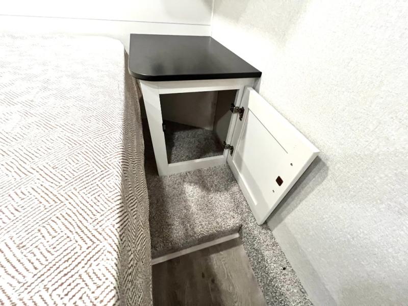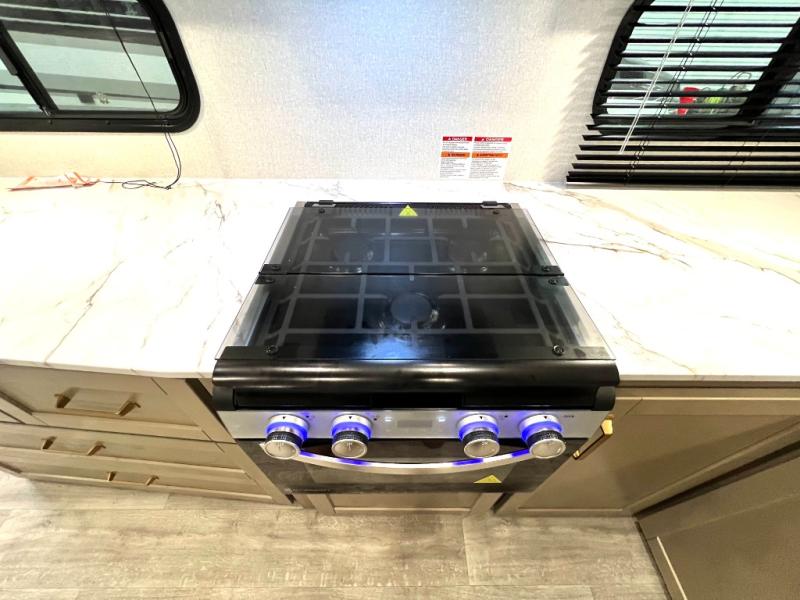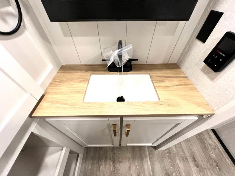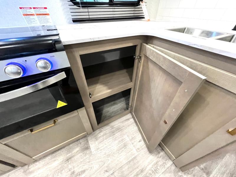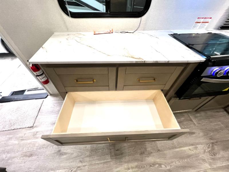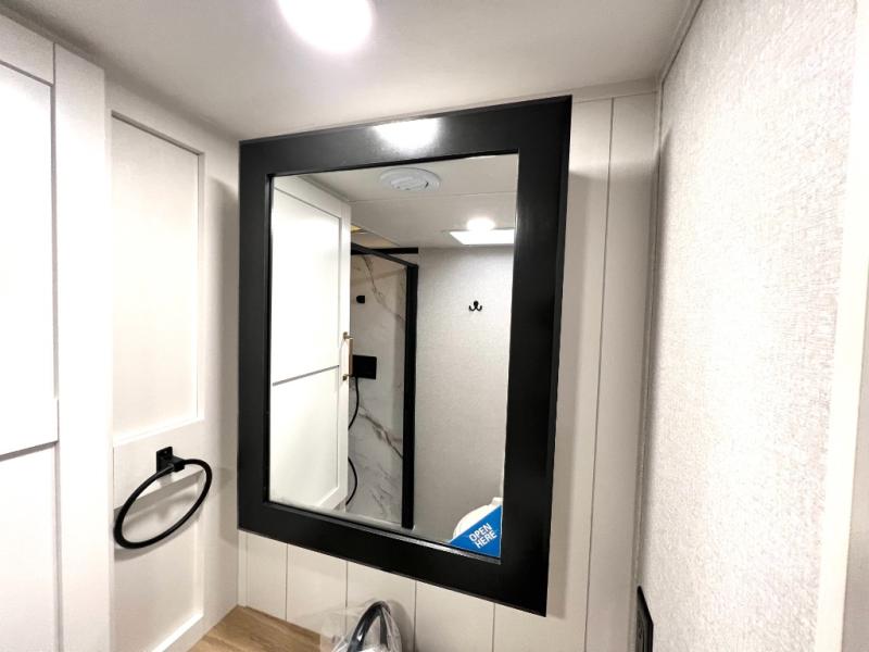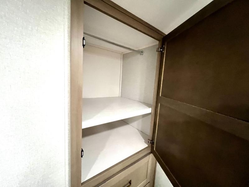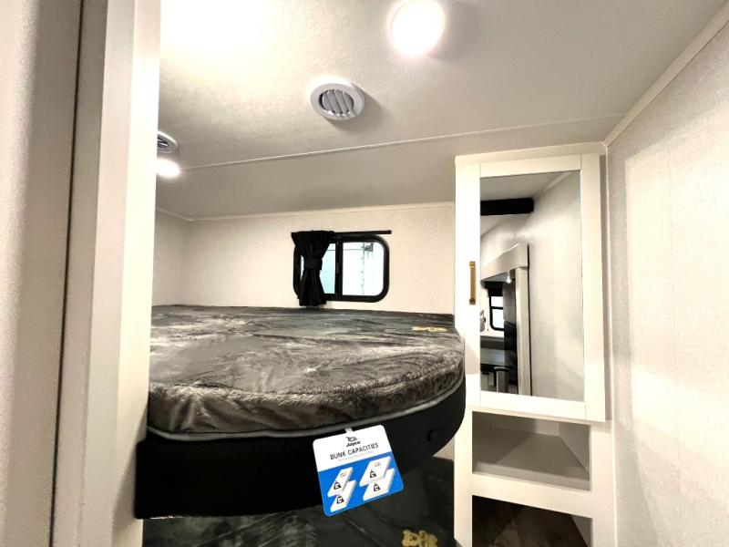 With any Eagle SLE fifth wheel by Jayco, you will enjoy a lighter tow weight, high-end finishes, and the same quality construction you've come to expect from Jayco! There is an Alpha Ply TPO roof membrane, a fully enclosed and heated underbelly, plus Stronghold VBL walls for added durability. There is also a rear 2" towing receiver outside, along with metal slam latch baggage doors, MORryde Step Above entry steps, and a Winegard Air 360 antenna with router prep if you want to stay connected as you camp. Once inside you'll enjoy the handcrafted door/drawer fronts, shower skylight, and residential vinyl flooring throughout with no carpet for an easier clean. The on-demand water heater, 30K BTU furnace, and 15K BTU "Whisper Quiet" A/C will ensure your comfort, and the Overland 1 Solar Package will provide off-grid capabilities!