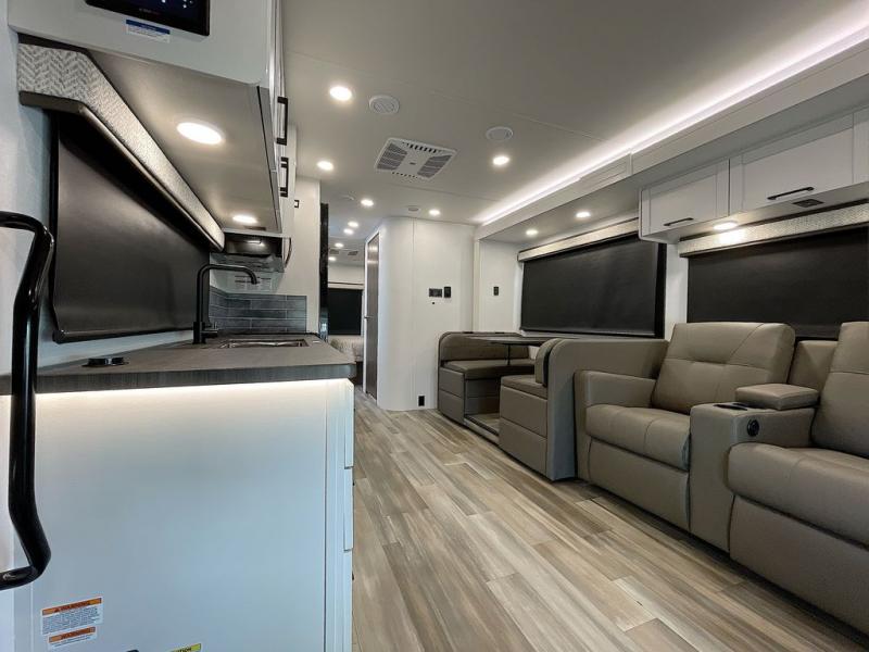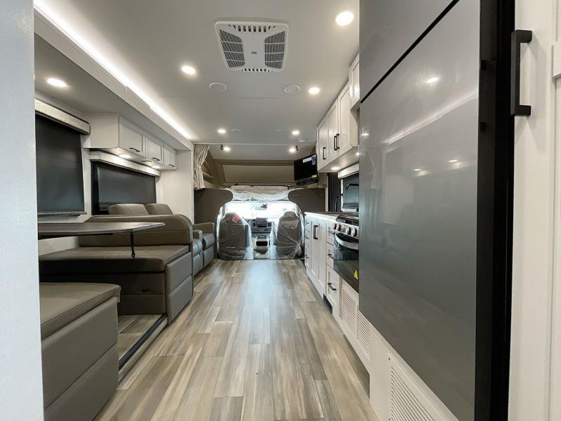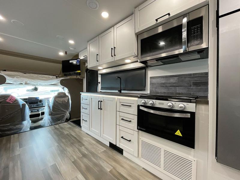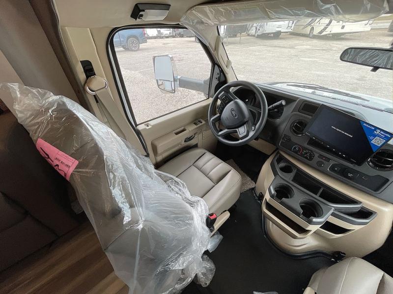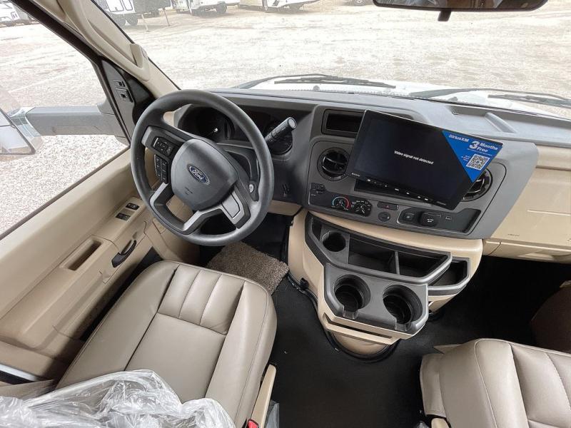 With any Greyhawk Class C gas motorhome by Jayco you will experience smooth sailing thanks to the JRIDE PLUS that comes with Koni shock absorbers, a computer-balanced driveshaft, Hellwig helper springs, and more. The Ford E-450 chassis with a 7.3L V8 325 HP engine will power your excursions, and you'll appreciate the added safety features for your peace of mind. Each model features a Sony infotainment center with Apple CarPlay and Android Auto, backup and side-view cameras, and a tire pressure monitor system the driver is sure to appreciate. Durable construction begins with Stronghold VBL roof, floor and sidewalls, bead-foam insulation, and a one-piece seamless fiberglass front cap. Head inside to find blackout night roller shades, LED-lit pressed countertops, an 84" interior ceiling height, and hardwood cabinet doors and drawers.