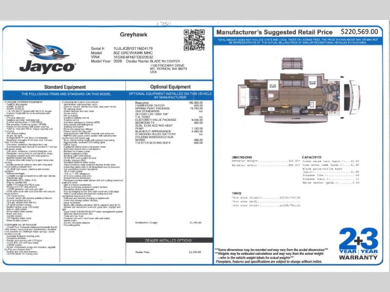 New 2026 Jayco Greyhawk 30Z Motor Home Class C