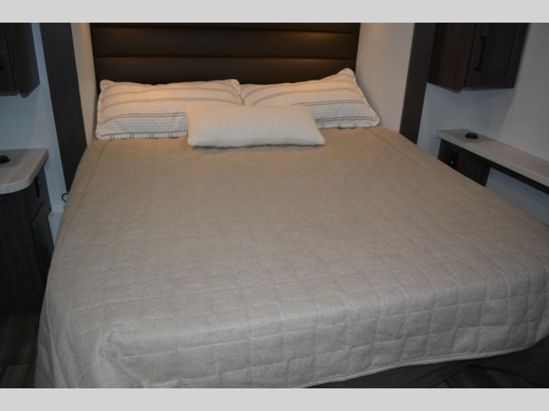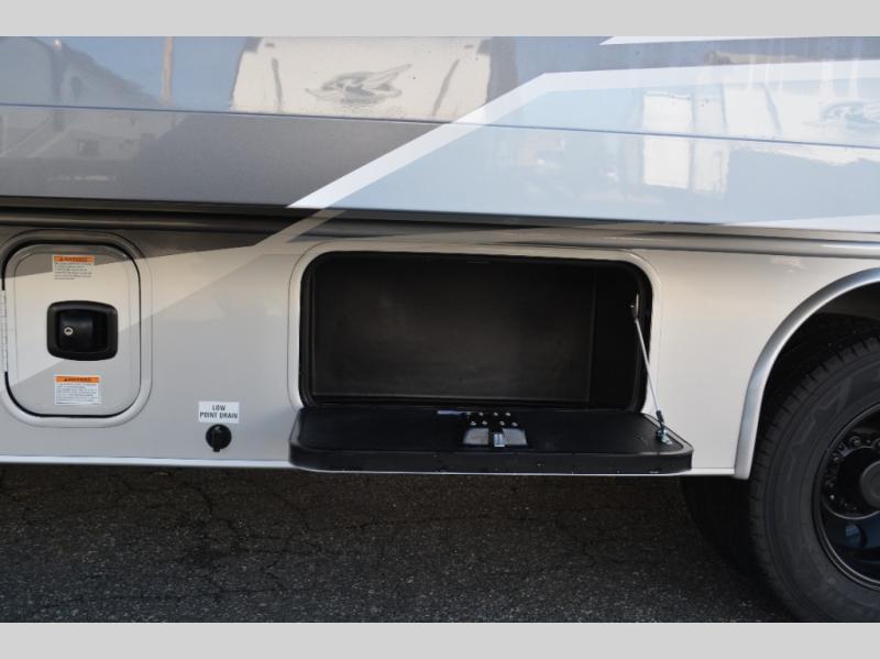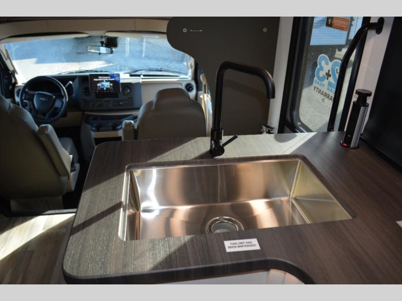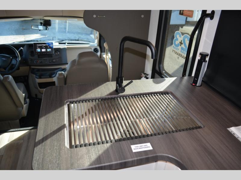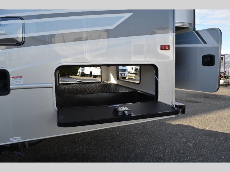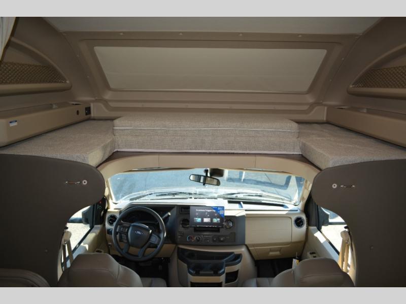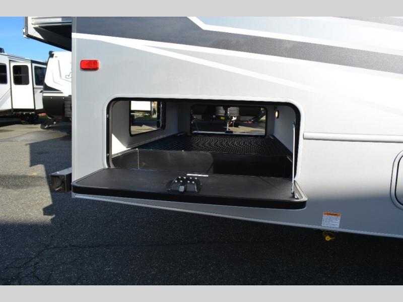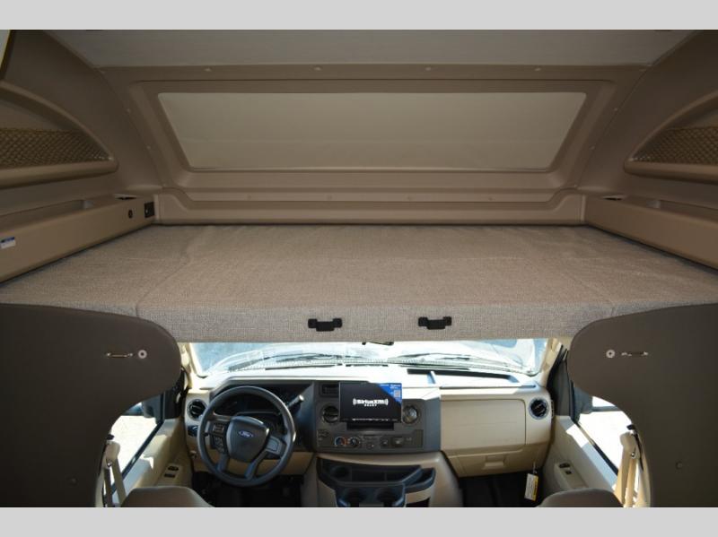 With any Greyhawk Class C gas motorhome by Jayco you will experience smooth sailing thanks to the JRIDE PLUS that comes with Koni shock absorbers, a computer-balanced driveshaft, Hellwig helper springs, and more. The Ford E-450 chassis with a 7.3L V8 325 HP engine will power your excursions, and you'll appreciate the added safety features for your peace of mind. Each model features a Sony infotainment center with Apple CarPlay and Android Auto, backup and side-view cameras, and a tire pressure monitor system the driver is sure to appreciate. Durable construction begins with Stronghold VBL roof, floor and sidewalls, bead-foam insulation, and a one-piece seamless fiberglass front cap. Head inside to find blackout night roller shades, LED-lit pressed countertops, an 84" interior ceiling height, and hardwood cabinet doors and drawers.