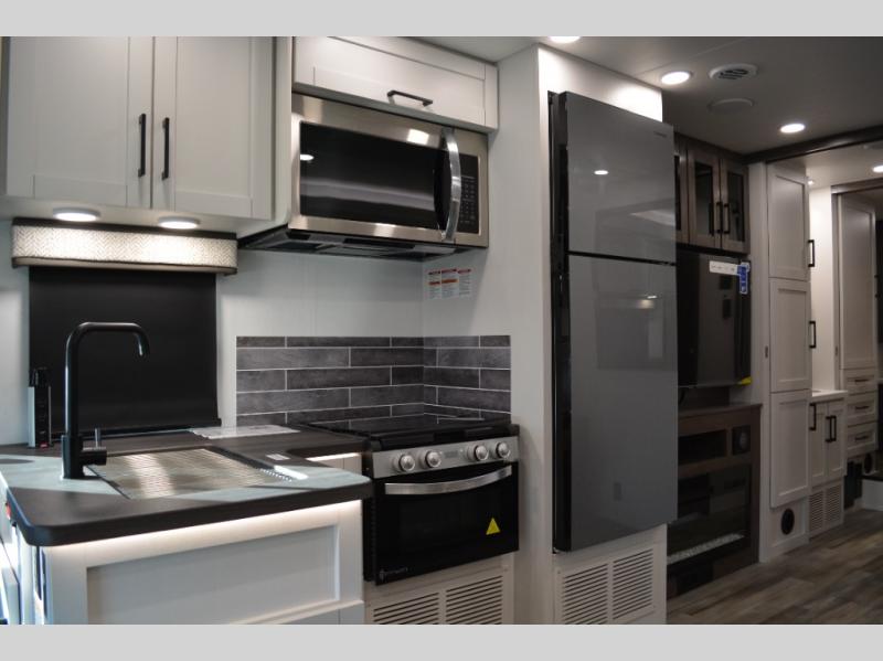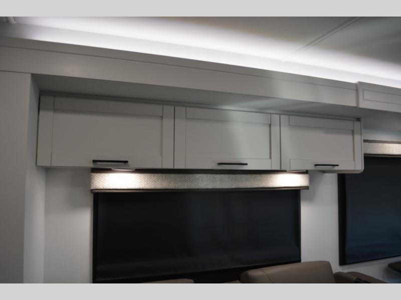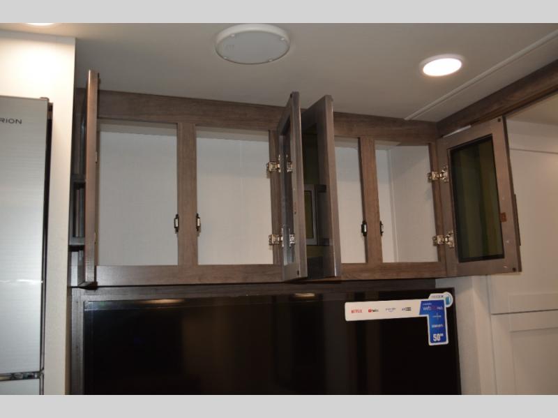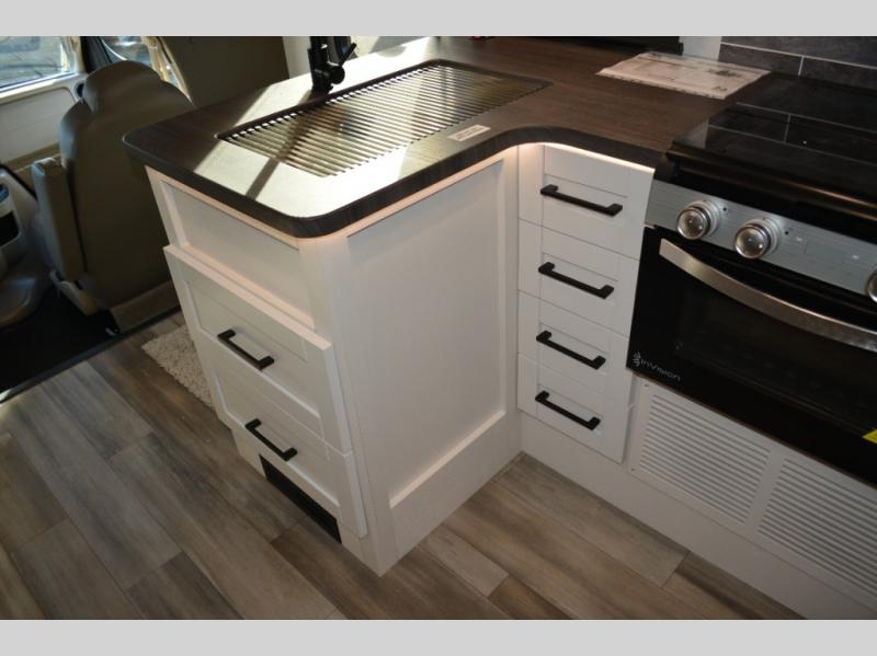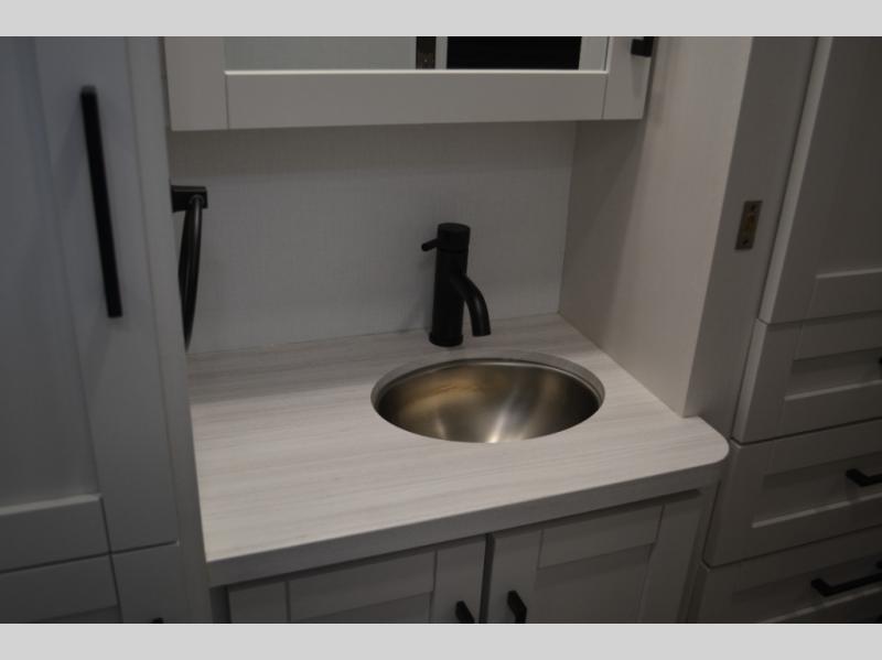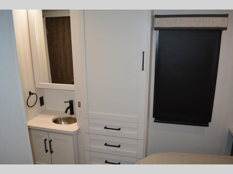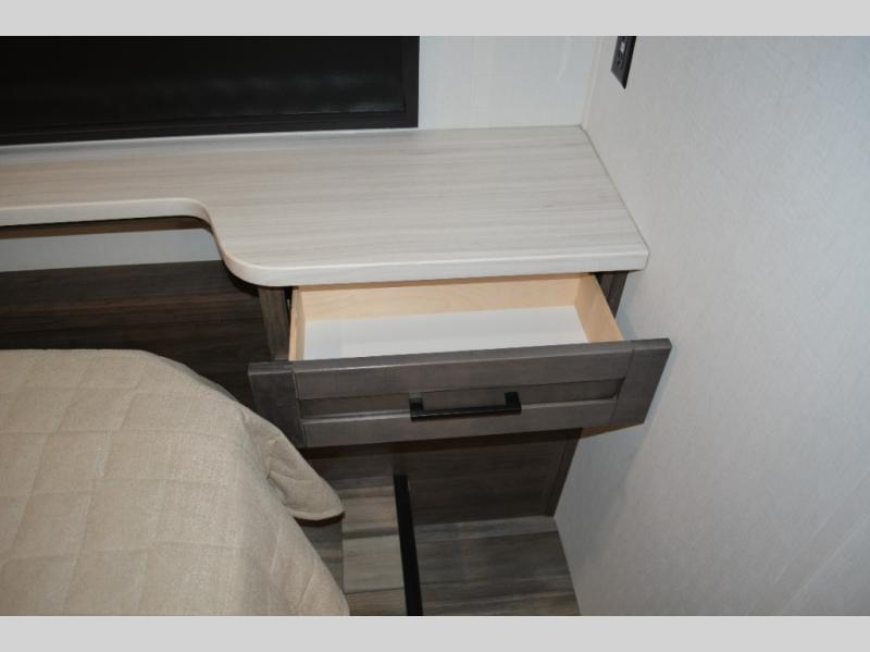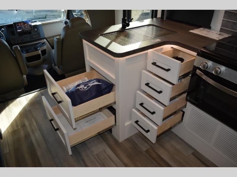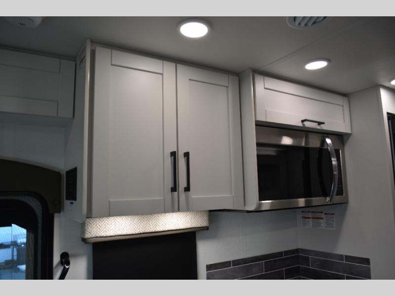 With any Greyhawk Class C gas motorhome by Jayco you will experience smooth sailing thanks to the JRIDE PLUS that comes with Koni shock absorbers, a computer-balanced driveshaft, Hellwig helper springs, and more. The Ford E-450 chassis with a 7.3L V8 325 HP engine will power your excursions, and you'll appreciate the added safety features for your peace of mind. Each model features a Sony infotainment center with Apple CarPlay and Android Auto, backup and side-view cameras, and a tire pressure monitor system the driver is sure to appreciate. Durable construction begins with Stronghold VBL roof, floor and sidewalls, bead-foam insulation, and a one-piece seamless fiberglass front cap. Head inside to find blackout night roller shades, LED-lit pressed countertops, an 84" interior ceiling height, and hardwood cabinet doors and drawers.
