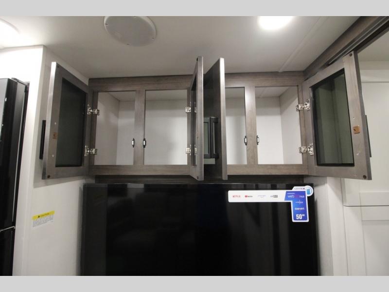 With any Greyhawk Class C gas motorhome by Jayco you will experience smooth sailing thanks to the JRIDE PLUS that comes with Koni shock absorbers, a computer-balanced driveshaft, Hellwig helper springs, and more. The Ford E-450 chassis with a 7.3L V8 325 HP engine will power your excursions, and you'll appreciate the added safety features for your peace of mind. Each model features a Sony infotainment center with Apple CarPlay and Android Auto, backup and side-view cameras, and a tire pressure monitor system the driver is sure to appreciate. Durable construction begins with Stronghold VBL roof, floor and sidewalls, bead-foam insulation, and a one-piece seamless fiberglass front cap. Head inside to find blackout night roller shades, LED-lit pressed countertops, an 84" interior ceiling height, and hardwood cabinet doors and drawers.