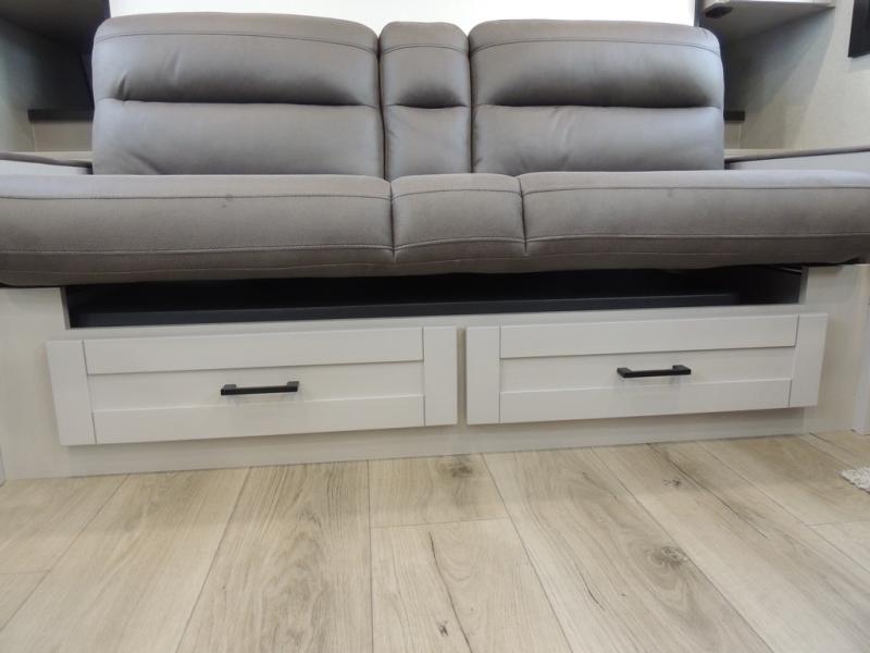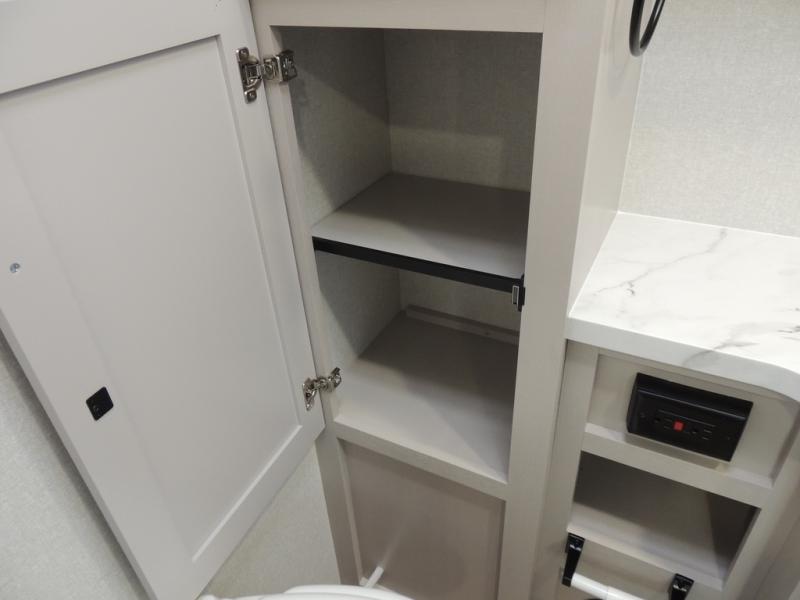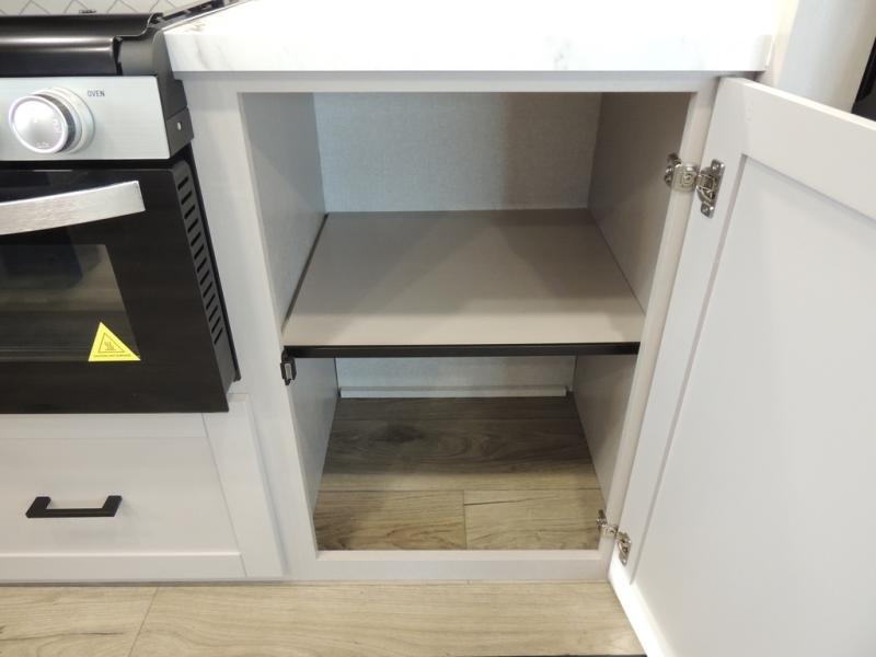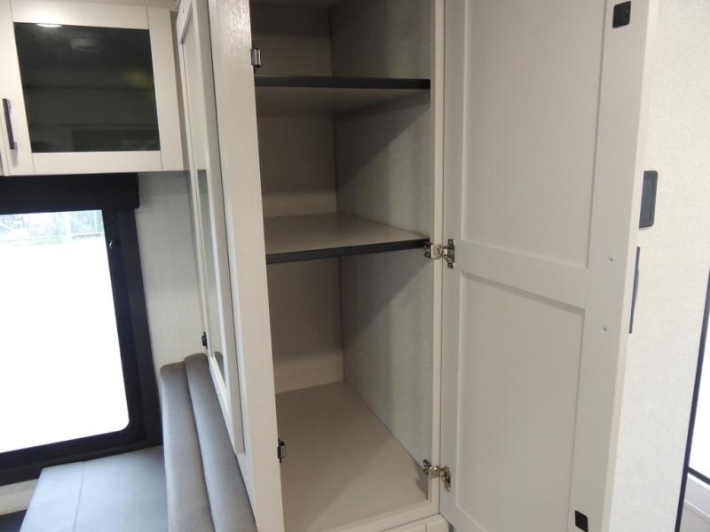 If you wish to escape the hustle and bustle of everyday life, then you need this travel trailer! It features a front Murphy bed with wardrobes on either side for bedtime and a jack-knife sofa during the day. You can play games at the booth dinette after enjoying a delicious meal prepared with the three burner cooktop or relax at the theater seating and enjoy the LED TV. The rear corner bathroom has a shower with a skylight for you to get cleaned up in, as well as a linen closet to store your towels. There is exterior storage space to keep your outdoor gear, a 15' power awning to protect you from the elements.