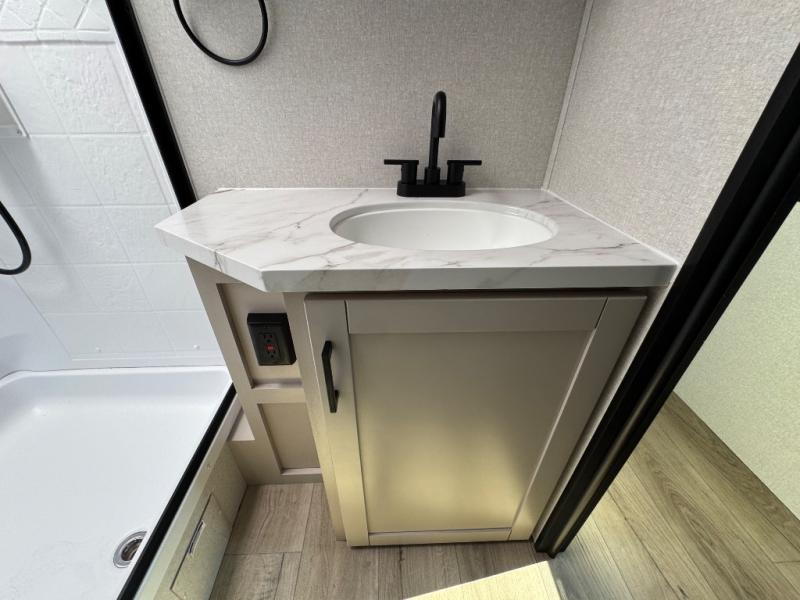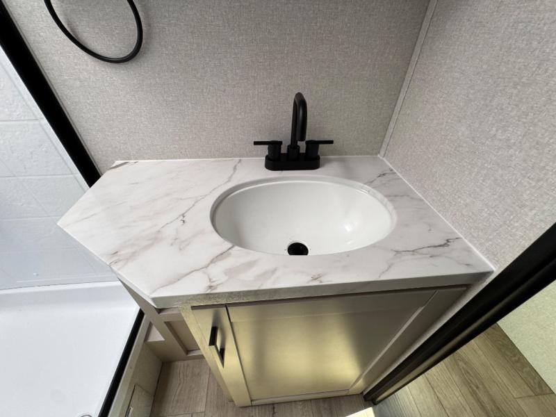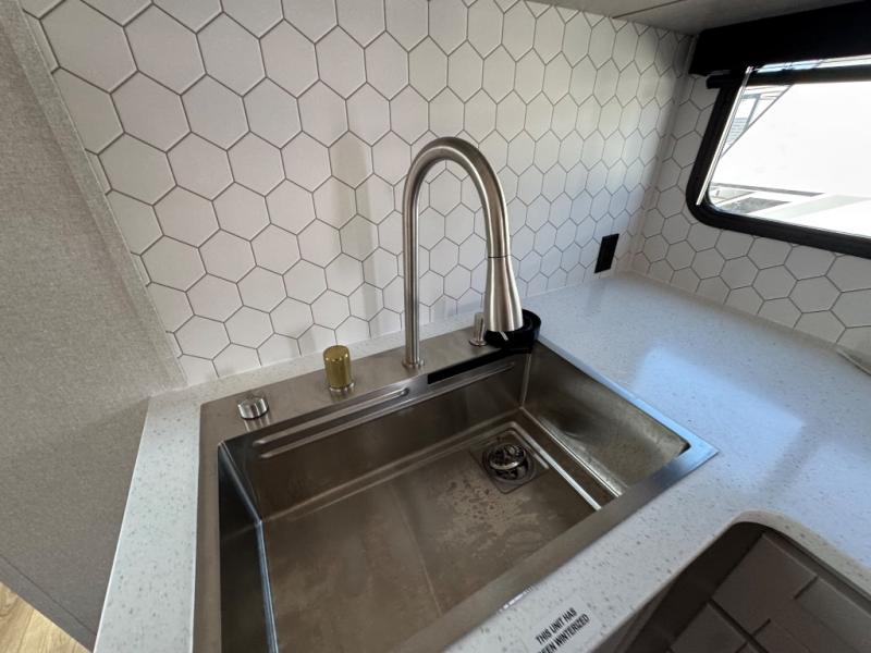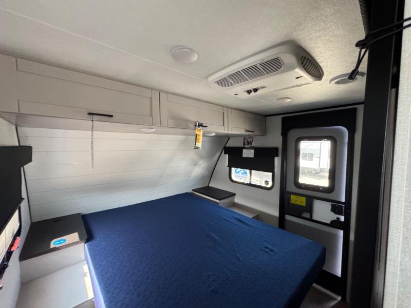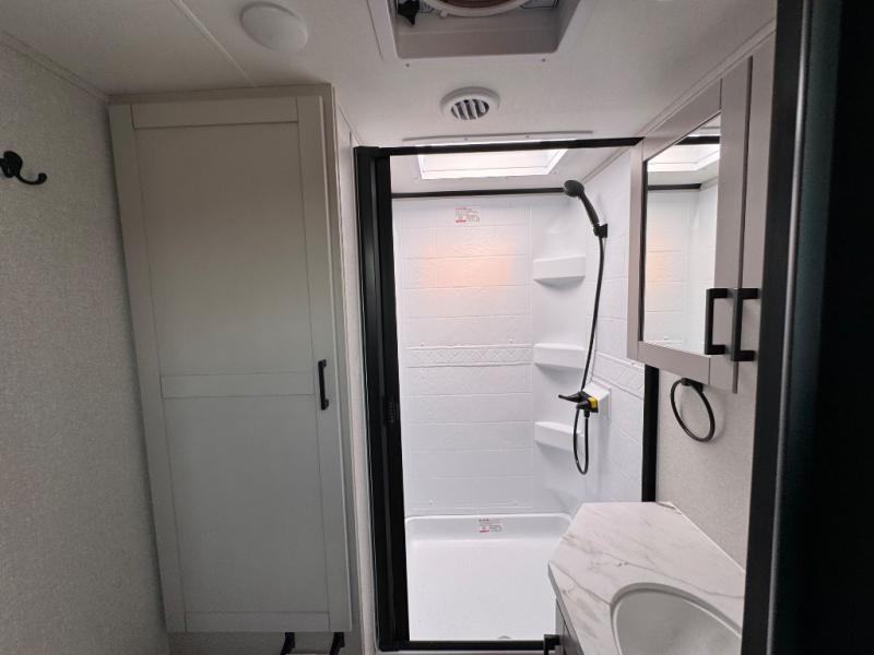 With any Jay Feather travel trailer by Jayco, you will enjoy lightweight towing, convenient exterior amenities, and at-home comforts inside! The Overlander 1 Solar Package included within the Jay Sport Package comes with a 200W solar panel and a 30-amp digital controller so you can enjoy some off-grid camping. There is also a modern graphics package with a dual-colored sidewall, LCI Solid Step fold-down aluminum tread steps on the main entry door, and Climate Shield 0 -100° F tested weather insulation package that will allow you to camp in all sorts of climates. The Customer Value Package will make time outdoors easier than ever with a power tongue jack and a Rock Solid stabilizer system, plus American-made nitro-filled Goodyear tires with self-adjusting electric brakes. More exterior features include a Keyed-Alike locking system, marine grade exterior speakers, a Magnum Truss roof system, and the list goes on! And we haven't even touched on the interior comforts, like the residential style seamless countertops and vinyl flooring throughout, decorative backsplash, handcrafted hardwood door/drawer fronts, and multiple USB charging ports to keep you going!