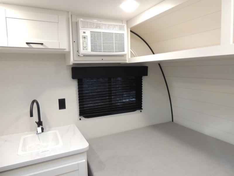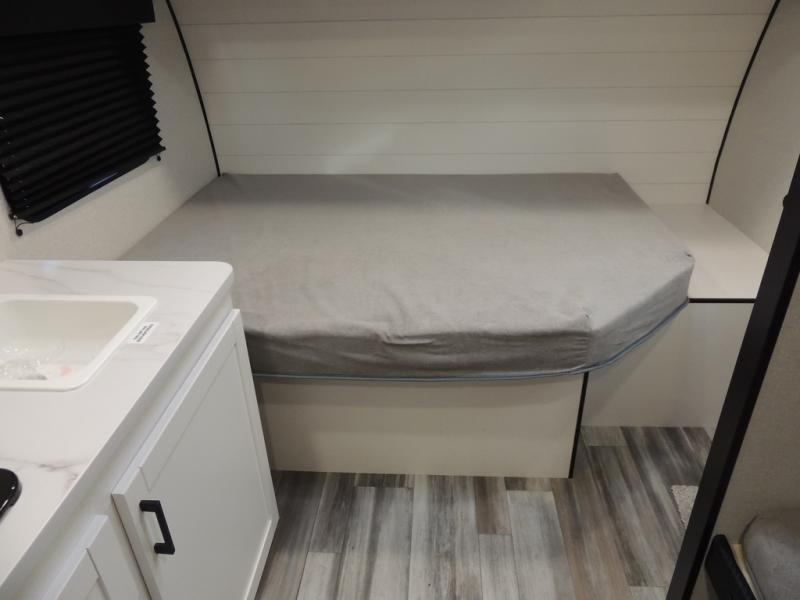 Your crew of four will love camping in this cozy travel trailer! There are bunk beds in the rear corner and a private bath in the other rear corner for easy nighttime use. You will have the front bed to yourselves, along with an overhead shelf and a nightstand/wardrobe for your clothes. The Customer Value Package on this Sport Edition model includes a 19K BTU furnace, stabilizer jacks, a power awning, an entry door with a window and shade prep, and many more stand-out features!