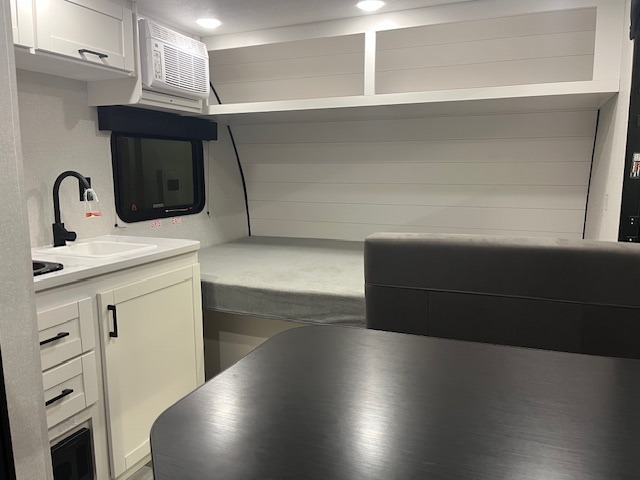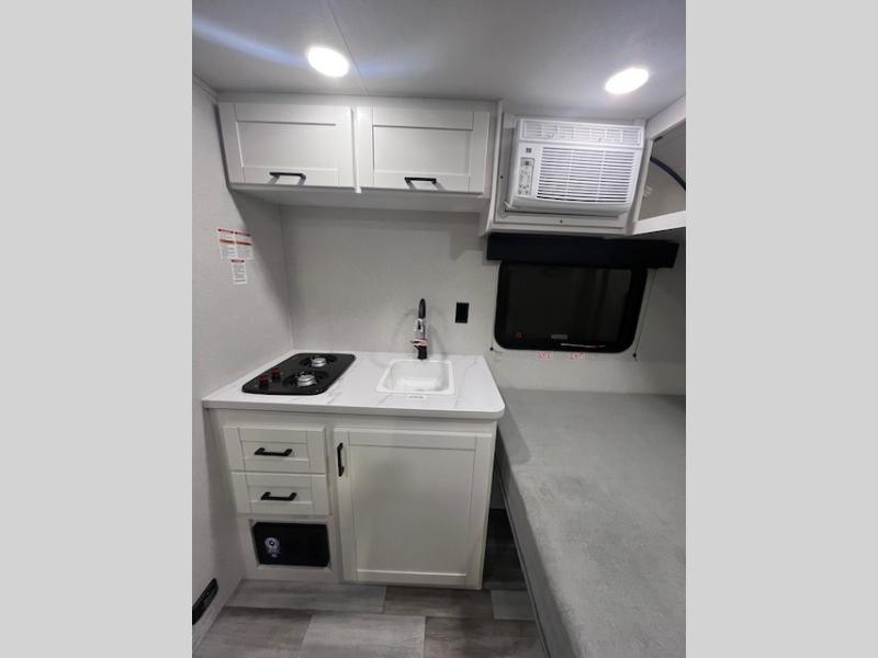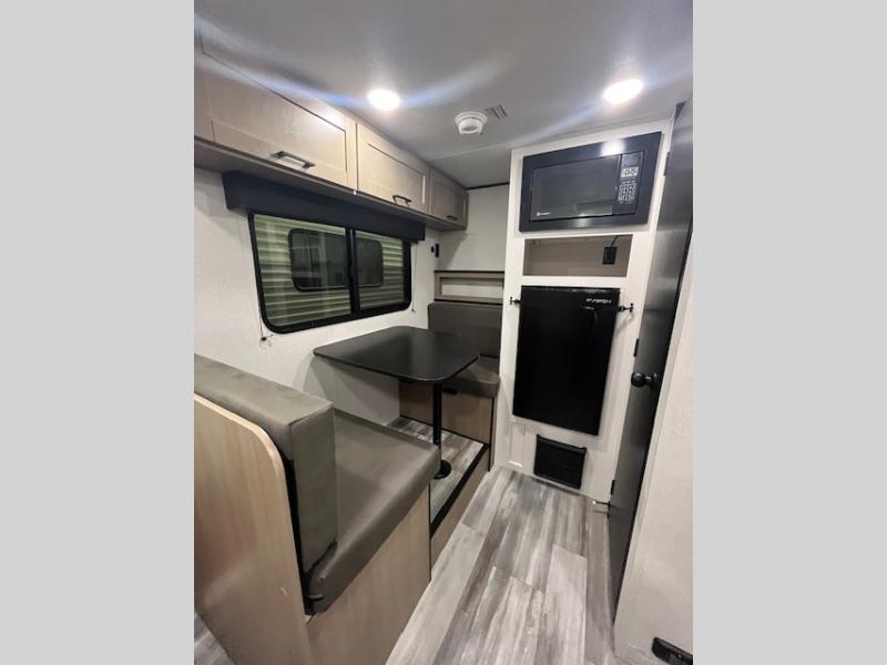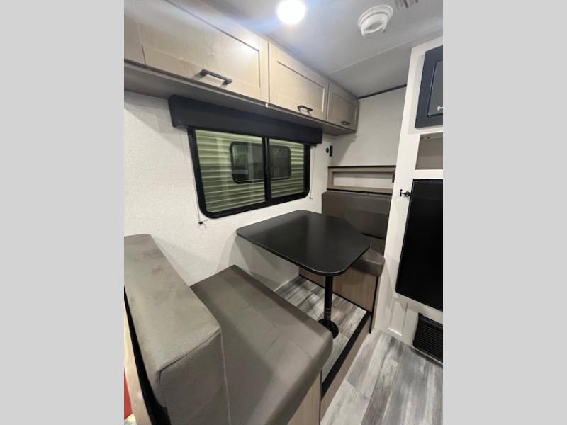 You will love camping in this cozy travel trailer! There is a rear corner booth dinette for dining space and a private bath in the other rear corner to freshen up. You will have the front bed to yourselves, along with an overhead shelf and a nightstand/wardrobe for your clothes. The Customer Value Package on this Sport Edition model includes a 19K BTU furnace, stabilizer jacks, a power awning, an entry door with a window and shade prep, and many more stand-out features!