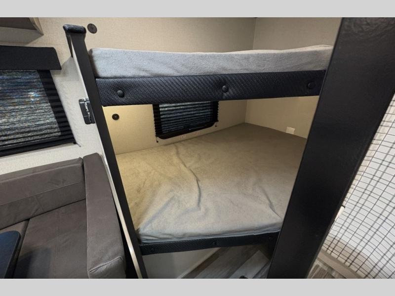 Your crew of six will love camping in this travel trailer! There are double-size bunk beds in the rear corner and a private bath in the other rear corner for easy nighttime use. You will have the front queen bed to yourselves, along with an overhead shelf and a nightstand for your things. And the L-shaped dinette provides a place to dine and play games. The Customer Value Package on this Sport Edition model includes a 19K BTU furnace, stabilizer jacks, a power awning, an entry door with a window and shade prep, and many more stand-out features!