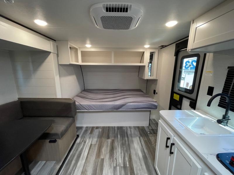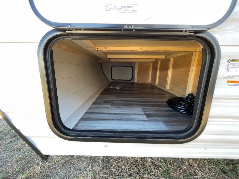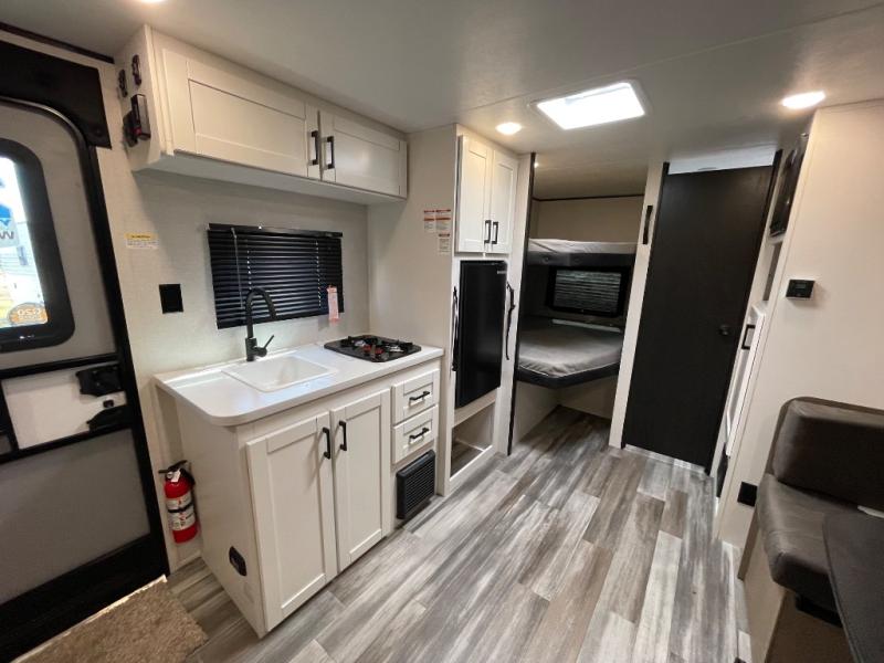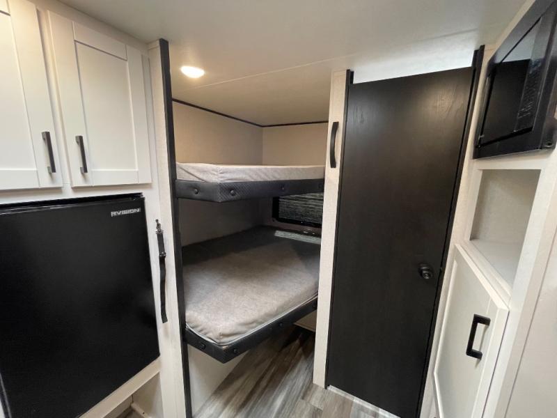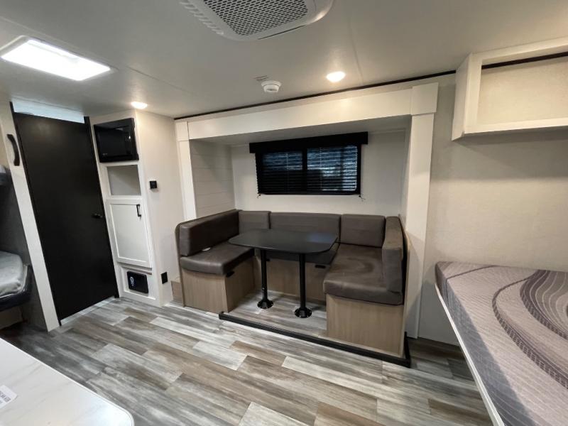 Your crew of eight will love camping in this travel trailer! There are double-size bunk beds in the rear corner and a private bath in the other rear corner for easy nighttime use. You will have the front queen bed to yourselves, along with an overhead shelf and a nightstand for your things. And the U-shaped dinette provides a place to dine, play games, and even let more guests sleep over. The Customer Value Package on this Sport Edition model includes a 19K BTU furnace, stabilizer jacks, a power awning, an entry door with a window and shade prep, and many more stand-out features!