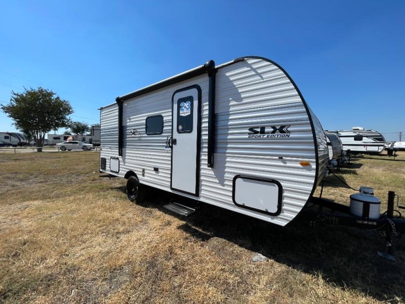 The Jayco Jay Flight SLX travel trailer is quite easy to own because it is lightweight for an easier towing experience. Built on a fully integrated A-frame with galvanized-steel, impact-resistant wheel wells, the Jay Flight SLX has quality at its very foundation. That quality continues on to the electric self-adjusting brakes, easy-lube hubs, Magnum Truss roof system, and LP quick connect. Some of what the mandatory Customer Value Package includes is backup camera prep, Keyed-Alike entry and baggage doors, and an on-demand tankless water heater.
