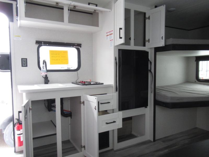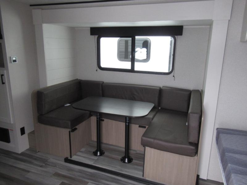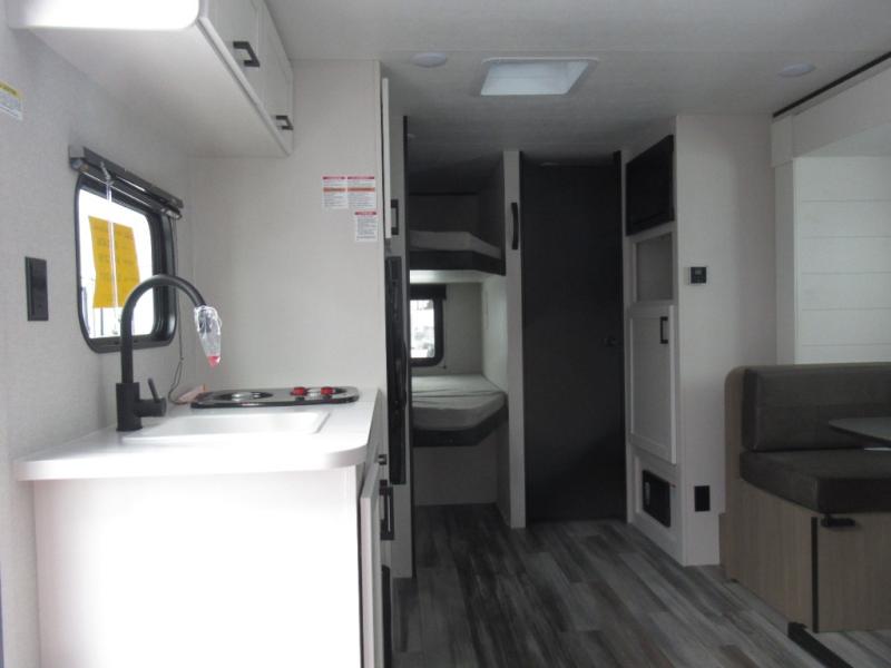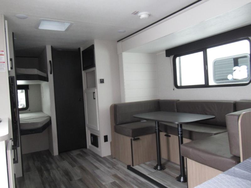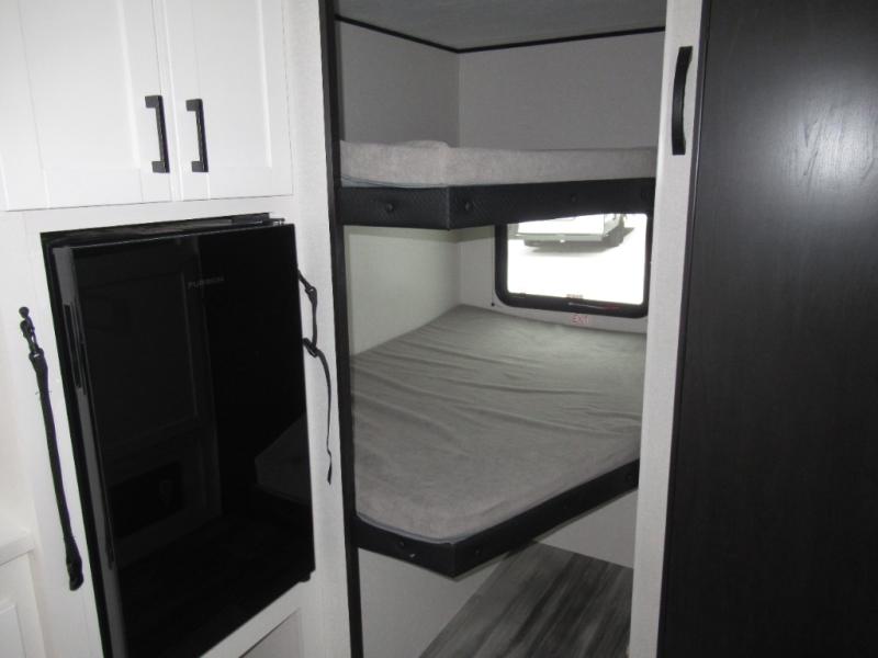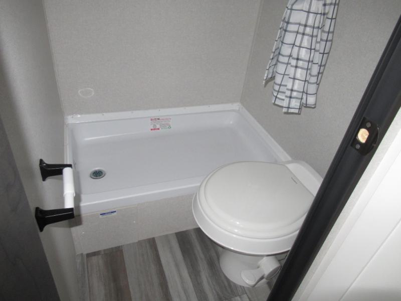 Your crew of eight will love camping in this travel trailer! There are double-size bunk beds in the rear corner and a private bath in the other rear corner for easy nighttime use. You will have the front queen bed to yourselves, along with an overhead shelf and a nightstand for your things. And the U-shaped dinette provides a place to dine, play games, and even let more guests sleep over. The Customer Value Package on this Sport Edition model includes a 19K BTU furnace, stabilizer jacks, a power awning, an entry door with a window and shade prep, and many more stand-out features!