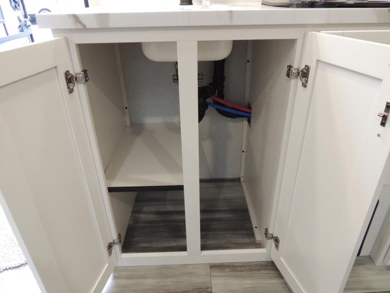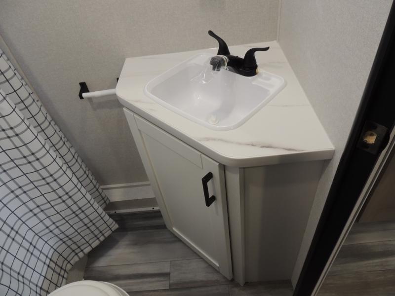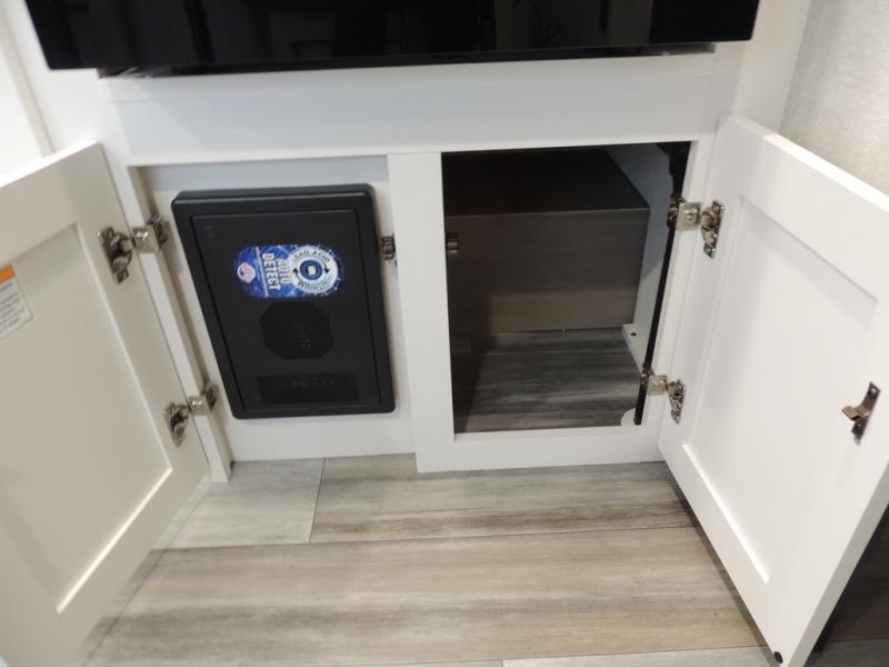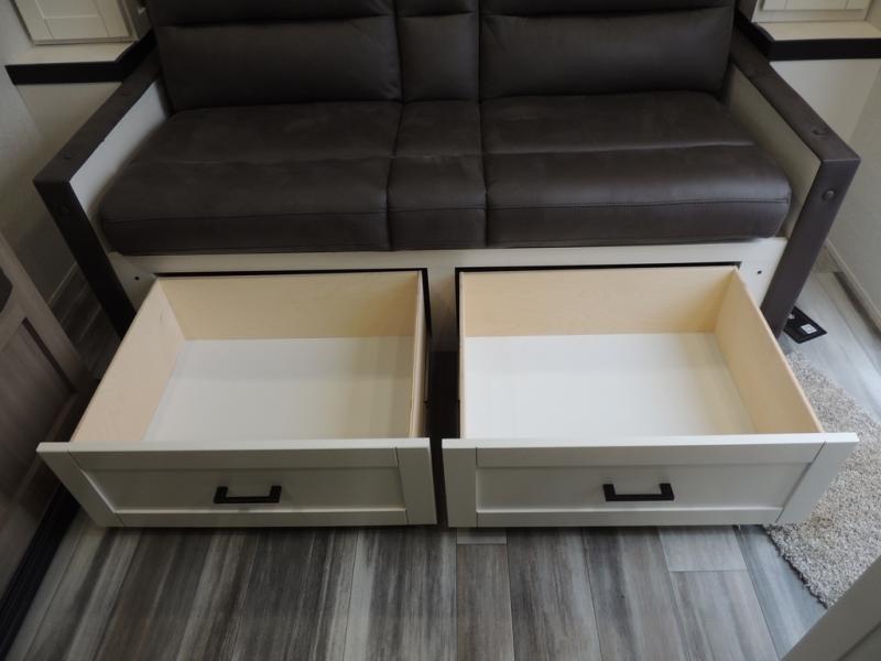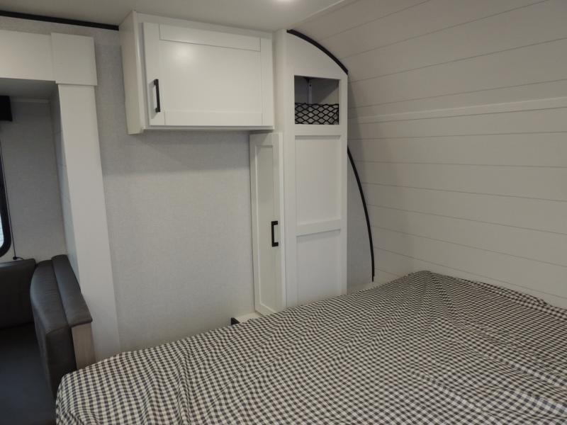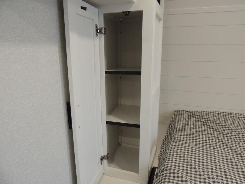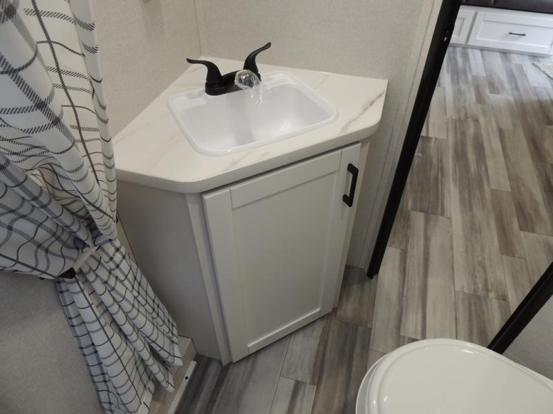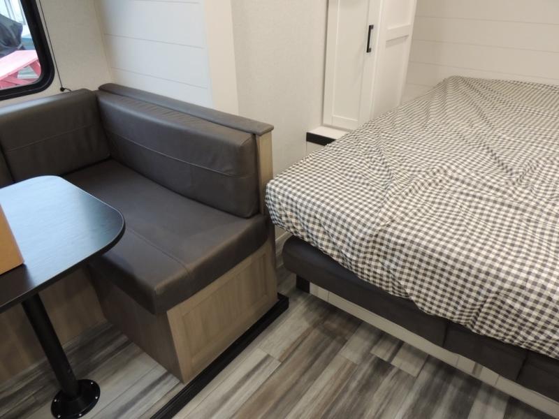 Any time spent in this travel trailer will be time well spent! You can easily sleep eight people each night thanks to the double-size bunks, front Murphy bed, and U-shaped dinette within the slide out. There is a full bath next to the bunks for easy nighttime use, and the linen closet will be perfect for clean towels. A cooktop, microwave oven, and 8 cu. ft. 12V refrigerator will let you cook and store food, and there is an overhead cabinet for spices or snacks!