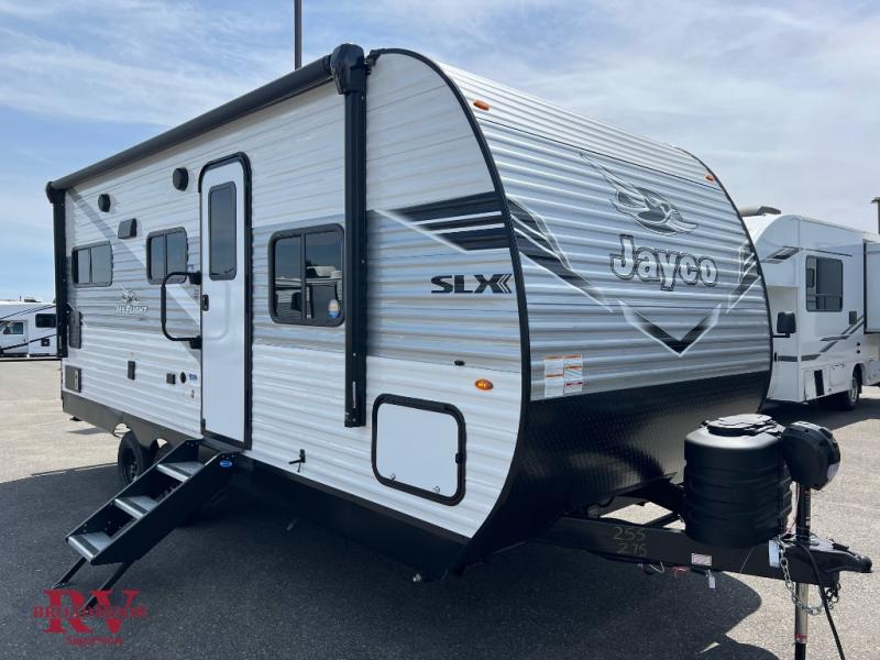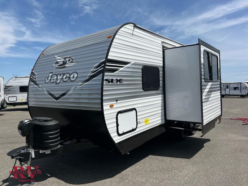 The Jayco Jay Flight SLX travel trailer is quite easy to own because it is lightweight for an easier towing experience. Built on a fully integrated A-frame with galvanized-steel, impact-resistant wheel wells, the Jay Flight SLX has quality at its very foundation. That quality continues on to the electric self-adjusting brakes, easy-lube hubs, Magnum Truss roof system, and LP quick connect. Some of what the mandatory Customer Value Package includes is backup camera prep, Keyed-Alike entry and baggage doors, marine grade exterior speakers, and an on-demand tankless water heater.