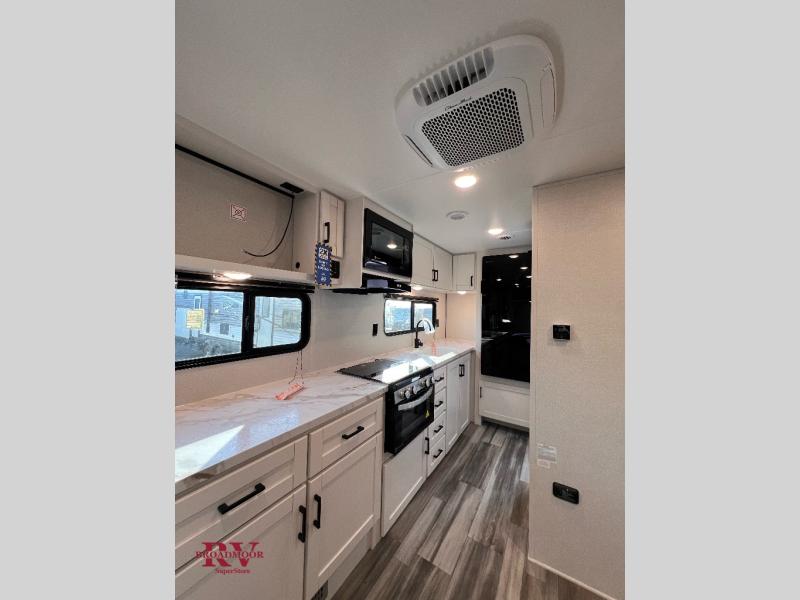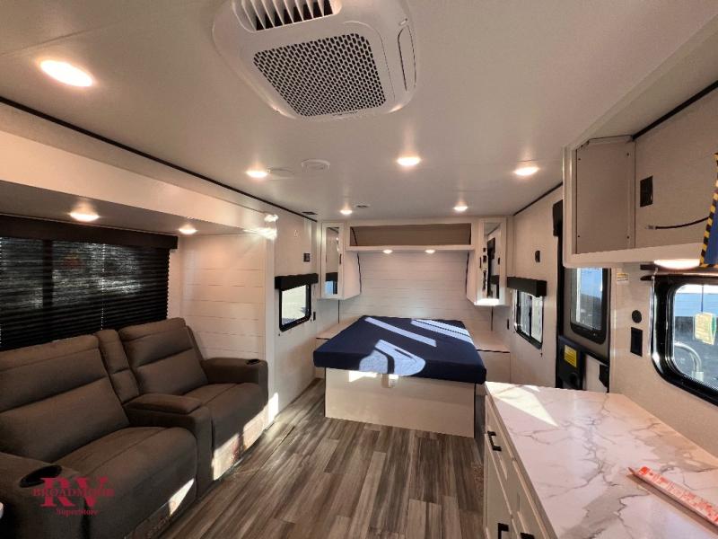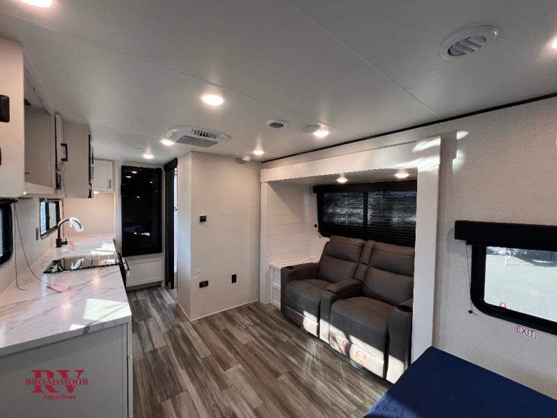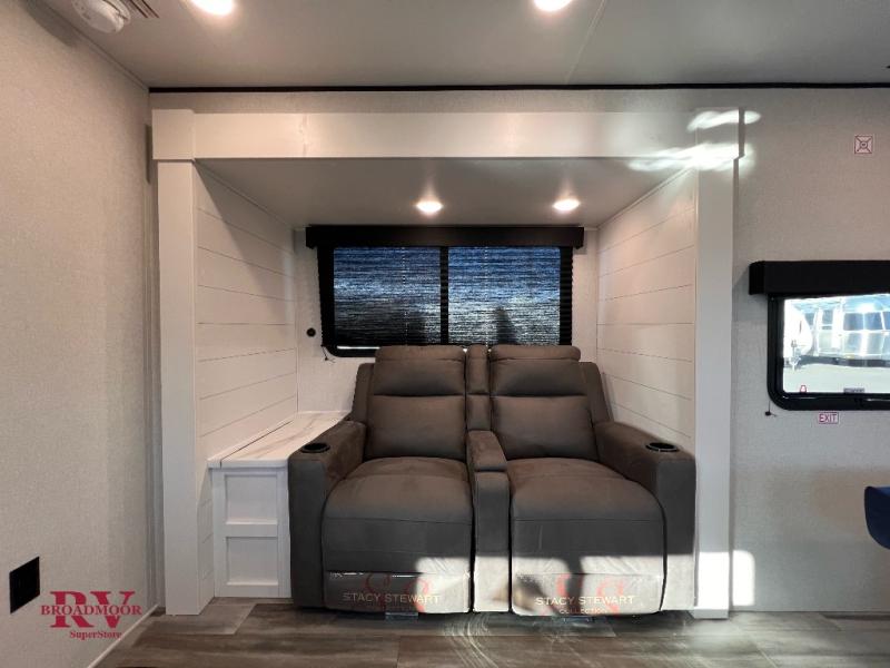 This couple's trailer will be perfect for weekend trips to the lake or extended stays at the campground. You can sleep on the front queen bed each night instead of on an air mattress, and the dual bedroom wardrobes will help keep your space organized. The theater seat is within a slide for more floor space, and the fully-equipped kitchen will allow you to make meals each day. You'll also appreciate the rear corner full bath to stay clean throughout each trip!