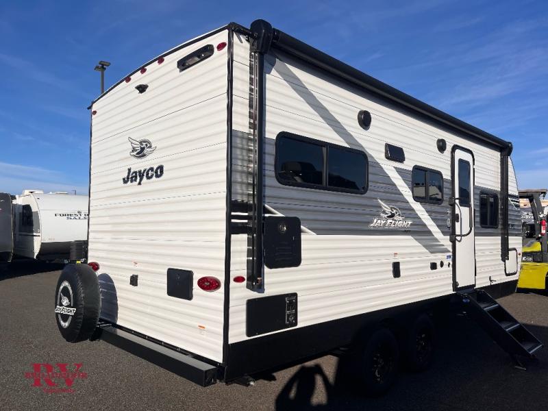 The Jayco Jay Flight SLX travel trailer is quite easy to own because it is lightweight for an easier towing experience. Built on a fully integrated A-frame with galvanized-steel, impact-resistant wheel wells, the Jay Flight SLX has quality at its very foundation. That quality continues on to the electric self-adjusting brakes, easy-lube hubs, Magnum Truss roof system, and LP quick connect. Some of what the mandatory Customer Value Package includes is backup camera prep, Keyed-Alike entry and baggage doors, and an on-demand tankless water heater.
