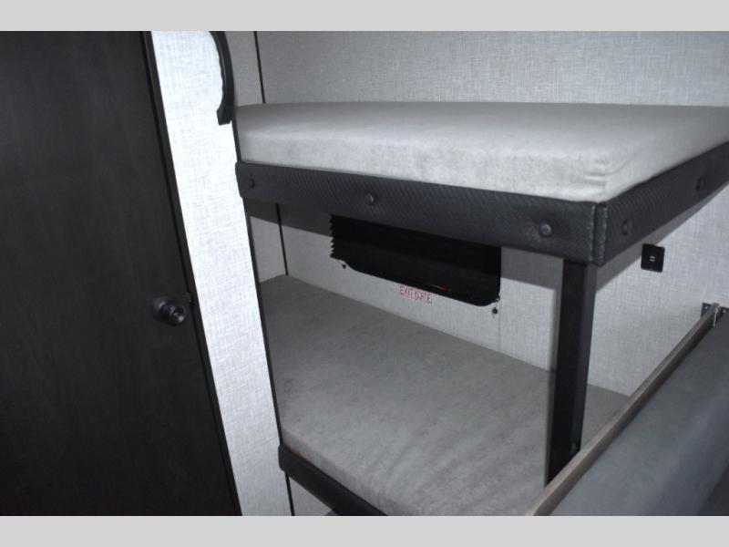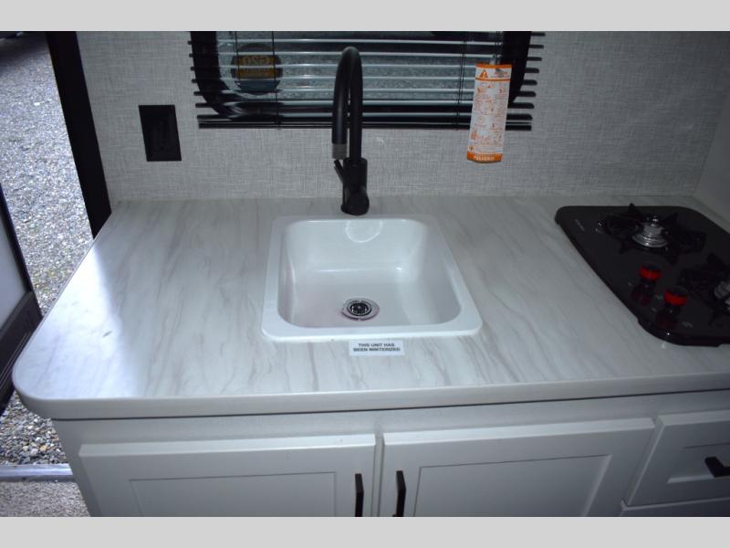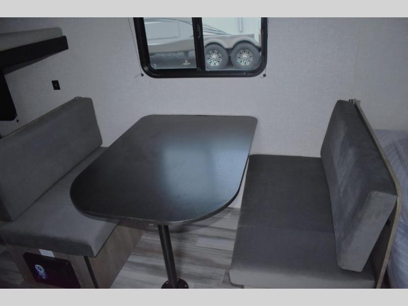 Camping in the woods is just what the doctor ordered and this trailer will provide all the interior comforts you need! There is a three burner cooktop and a microwave oven to prepare meals each day, plus an 8 cu. ft. 12V refrigerator for cold items. After your meal is made, you can dine at the booth dinette or relax on the jack-knife sofa, and these areas can become sleeping space for two to three guests at night. The full bath with a shower means you won't have to use the camp's facilities and the 16' power awning will provide protection from the sun as you visit with other campers!