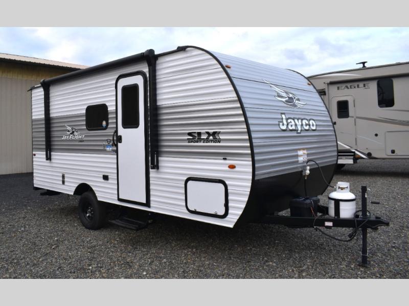 The Jayco Jay Flight SLX travel trailer is quite easy to own because it is lightweight for an easier towing experience. Built on a fully integrated A-frame with galvanized-steel, impact-resistant wheel wells, the Jay Flight SLX has quality at its very foundation. That quality continues on to the electric self-adjusting brakes, easy-lube hubs, Magnum Truss roof system, and LP quick connect. Some of what the mandatory Customer Value Package includes is backup camera prep, Keyed-Alike entry and baggage doors, and an on-demand tankless water heater.