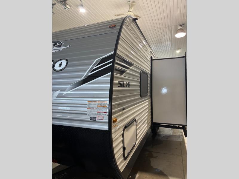The Jayco Jay Flight SLX travel trailer is quite easy to own because it is lightweight for an easier towing experience. Built on a fully integrated A-frame with galvanized-steel, impact-resistant wheel wells, the Jay Flight SLX has quality at its very foundation. That quality continues on to the electric self-adjusting brakes, easy-lube hubs, Magnum Truss roof system, and LP quick connect. Some of what the mandatory Customer Value Package includes is backup camera prep, Keyed-Alike entry and baggage doors, and an on-demand tankless water heater.