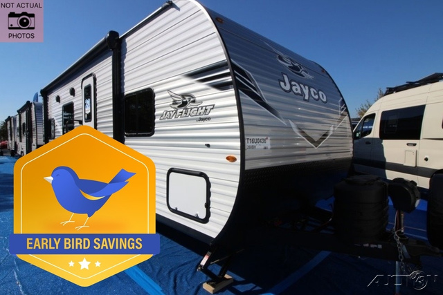 The Jayco Jay Flight SLX travel trailer is quite easy to own because it is lightweight for an easier towing experience. Built on a fully integrated A-frame with galvanized-steel, impact-resistant wheel wells, the Jay Flight SLX has quality at its very foundation. That quality continues on to the electric self-adjusting brakes, easy-lube hubs, Magnum Truss roof system, and LP quick connect. Some of what the mandatory Customer Value Package includes is backup camera prep, Keyed-Alike entry and baggage doors, and an on-demand tankless water heater.