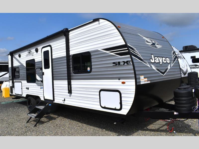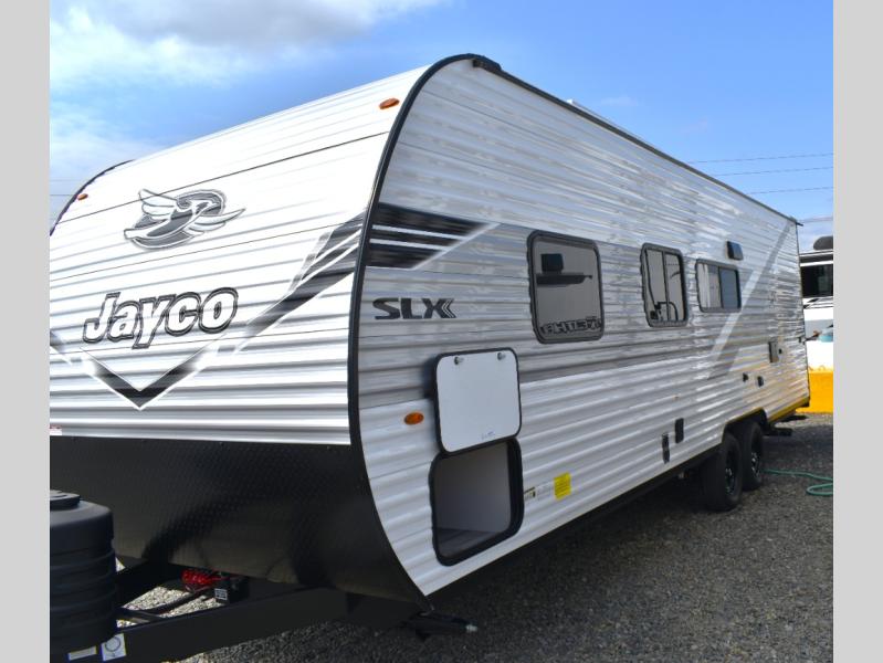 The Jayco Jay Flight SLX travel trailer is quite easy to own because it is lightweight for an easier towing experience. Built on a fully integrated A-frame with galvanized-steel, impact-resistant wheel wells, the Jay Flight SLX has quality at its very foundation. That quality continues on to the electric self-adjusting brakes, easy-lube hubs, Magnum Truss roof system, and LP quick connect. Some of what the mandatory Customer Value Package includes is backup camera prep, Keyed-Alike entry and baggage doors, and an on-demand tankless water heater.