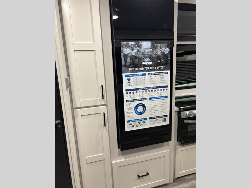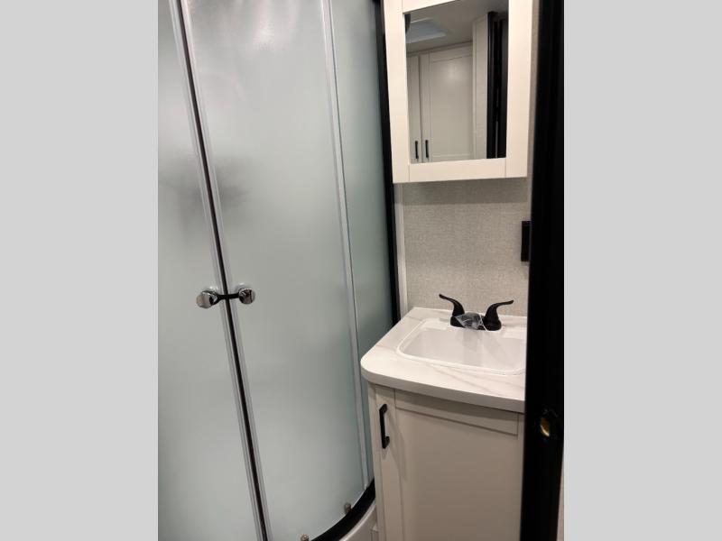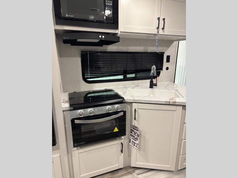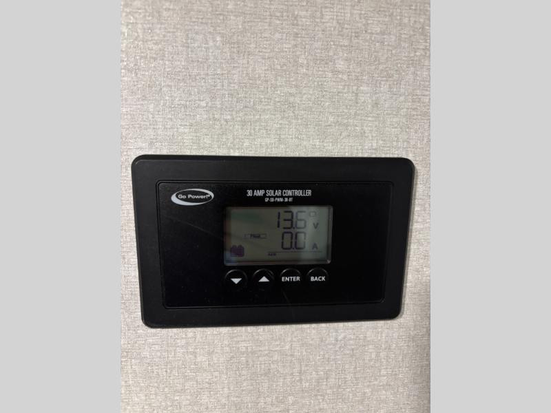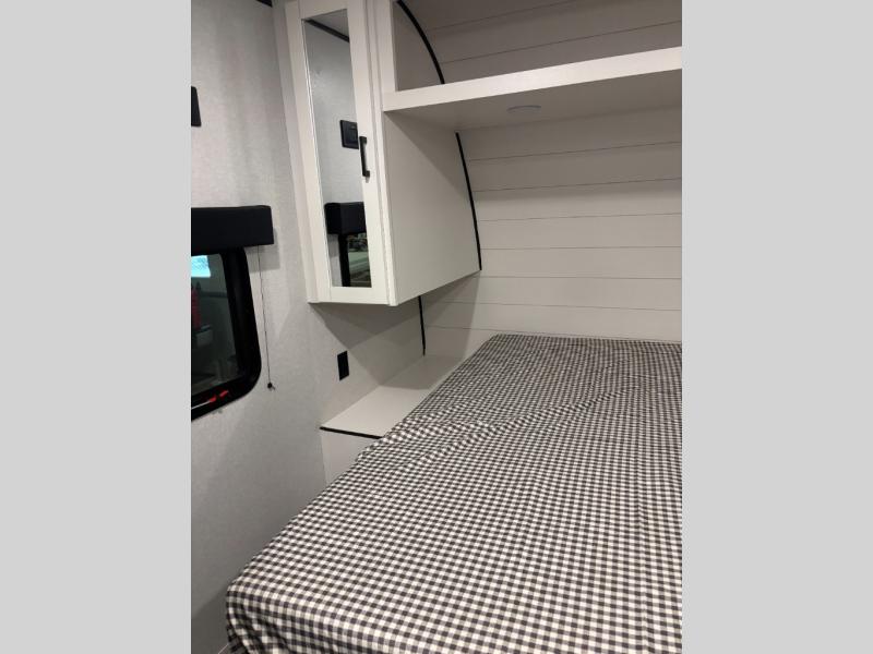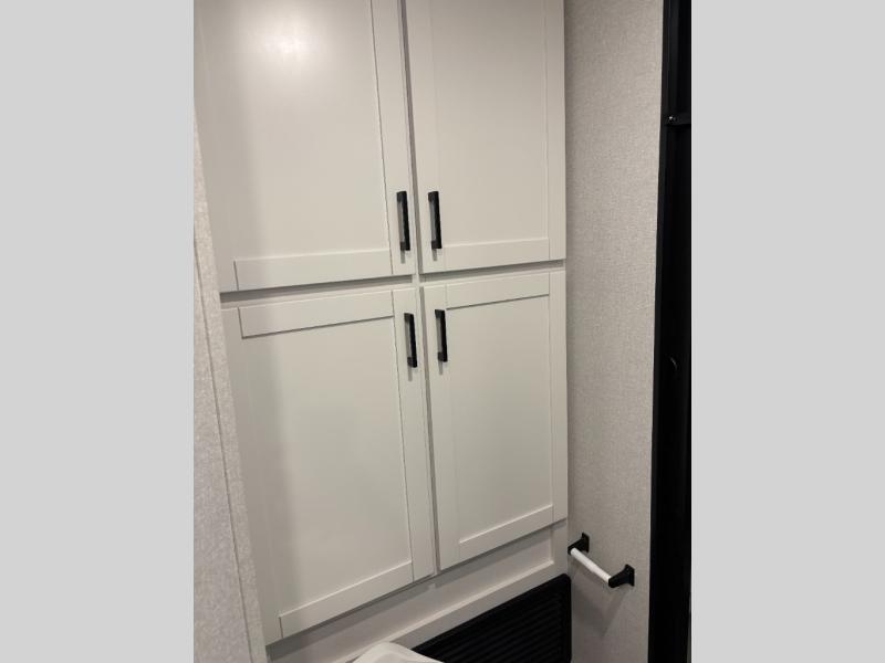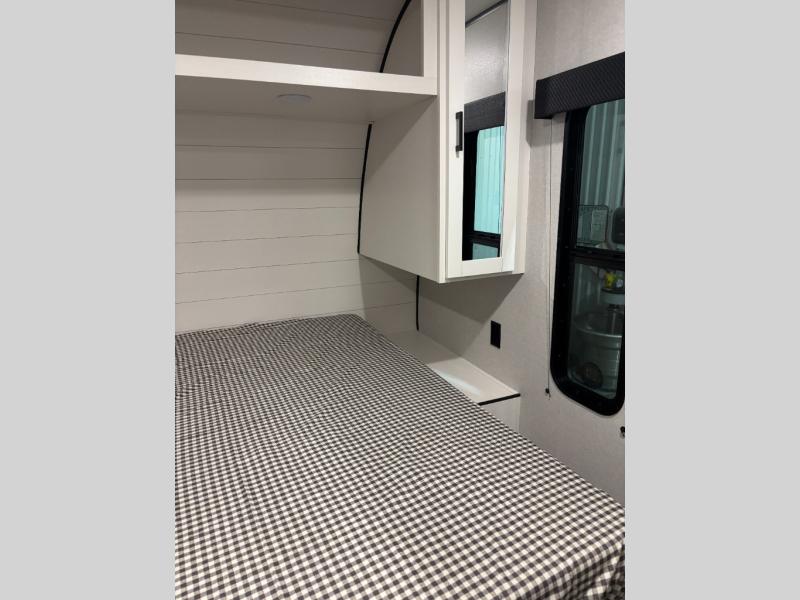 You can comfortably sleep up to six people in this trailer thanks to the RV queen bed in the front bedroom, plus the booth dinette and jack-knife sofa in the main living area! The chef of your crew will have a three burner cooktop and microwave oven to prepare meals, and everyone can store their favorite drinks in the 8 cu. ft. 12V refrigerator. The walk-through bath is spacious and includes a radius shower, toilet, a sink, and linen closet and is the full width of the unit. The outside storage will let you bring along camp chairs and games, fishing poles and more, plus the 18' 3" power awning with LED lights will create a nice place to gather in the evenings!