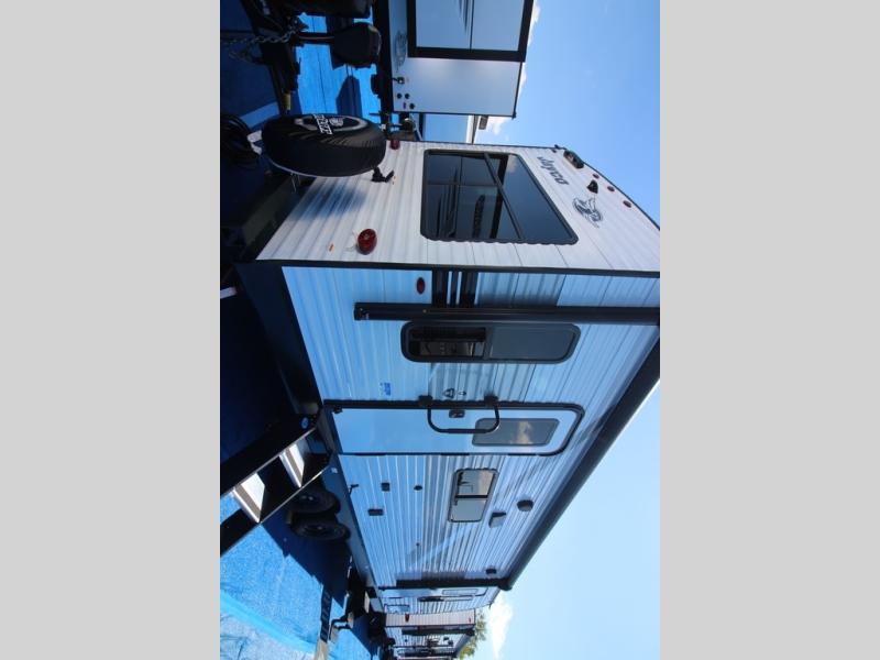 The Jayco Jay Flight SLX travel trailer is quite easy to own because it is lightweight for an easier towing experience. Built on a fully integrated A-frame with galvanized-steel, impact-resistant wheel wells, the Jay Flight SLX has quality at its very foundation. That quality continues on to the electric self-adjusting brakes, easy-lube hubs, Magnum Truss roof system, and LP quick connect. Some of what the mandatory Customer Value Package includes is backup camera prep, Keyed-Alike entry and baggage doors, and an on-demand tankless water heater.