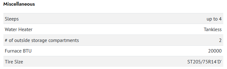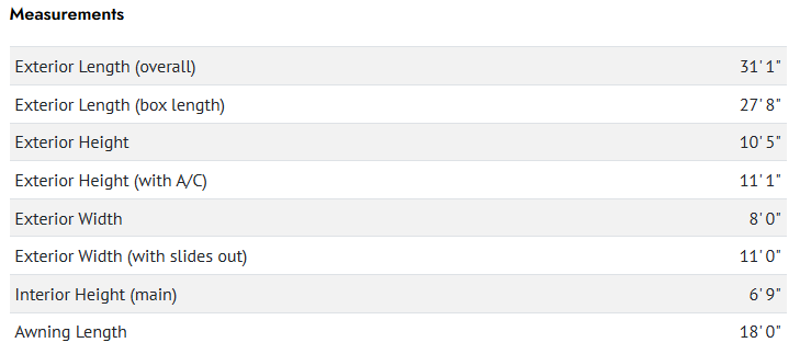 | Awning Info | 18' Electric with LED Lights |