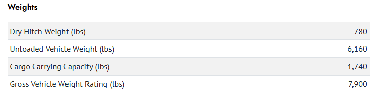 | Hitch Weight | 780 lbs |