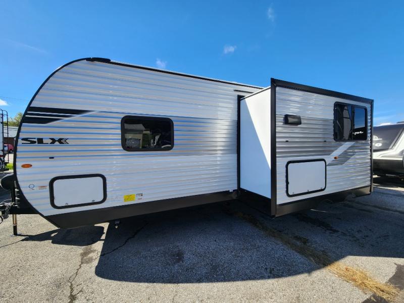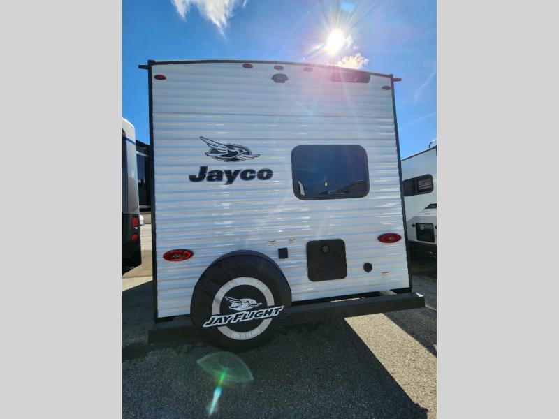 The Jayco Jay Flight SLX travel trailer is quite easy to own because it is lightweight for an easier towing experience. Built on a fully integrated A-frame with galvanized-steel, impact-resistant wheel wells, the Jay Flight SLX has quality at its very foundation. That quality continues on to the electric self-adjusting brakes, easy-lube hubs, Magnum Truss roof system, and LP quick connect. Some of what the mandatory Customer Value Package includes is backup camera prep, Keyed-Alike entry and baggage doors, and an on-demand tankless water heater.