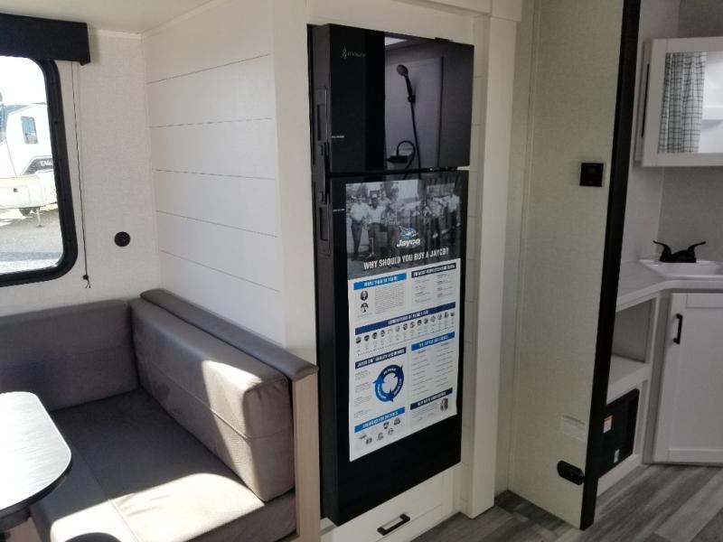 The Jayco Jay Flight SLX travel trailer is quite easy to own because it is lightweight for an easier towing experience. Built on a fully integrated A-frame with galvanized-steel, impact-resistant wheel wells, the Jay Flight SLX has quality at its very foundation. That quality continues on to the electric self-adjusting brakes, easy-lube hubs, Magnum Truss roof system, and LP quick connect. Some of what the mandatory Customer Value Package includes is backup camera prep, Keyed-Alike entry and baggage doors, and an on-demand tankless water heater.