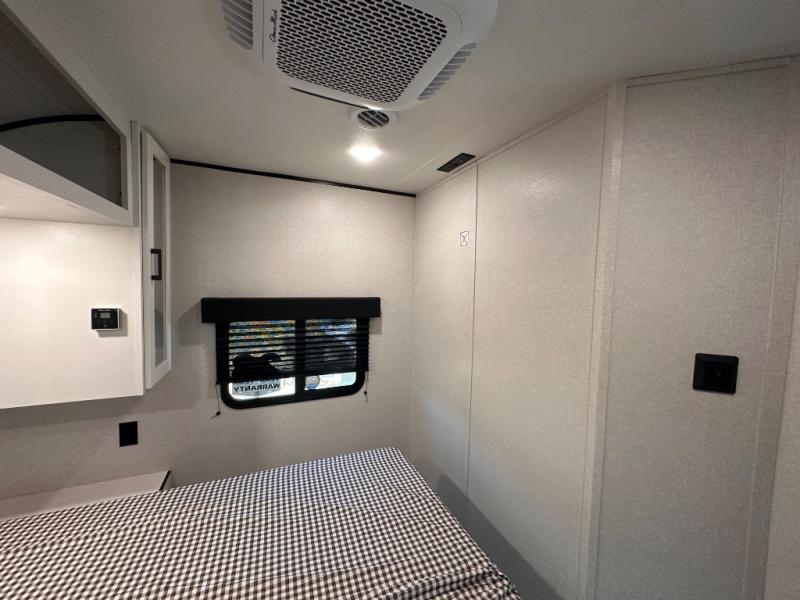 It's time to ditch that old tent and upgrade to this spacious travel trailer! There is a rear private bunkhouse includes a flip-up bunk over a 28" x 76" bunk, plus a bunk across the room and a wardrobe. You'll enjoy the front private bedroom all to yourselves with a queen bed and dual wardrobes, and the full bath is close by for easy nighttime use. A U-shaped dinette slide and sofa in the main living area provide your crew with space to relax and dine together, and the fully equipped kitchen lets you cook up your best meals. Outside, you'll find exterior storage, an 18' power awning, plus an outdoor refrigerator, shelf, and TV prep!