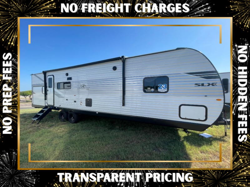 The Jayco Jay Flight SLX travel trailer is quite easy to own because it is lightweight for an easier towing experience. Built on a fully integrated A-frame with galvanized-steel, impact-resistant wheel wells, the Jay Flight SLX has quality at its very foundation. That quality continues on to the electric self-adjusting brakes, easy-lube hubs, Magnum Truss roof system, and LP quick connect. Some of what the mandatory Customer Value Package includes is backup camera prep, Keyed-Alike entry and baggage doors, and an on-demand tankless water heater.