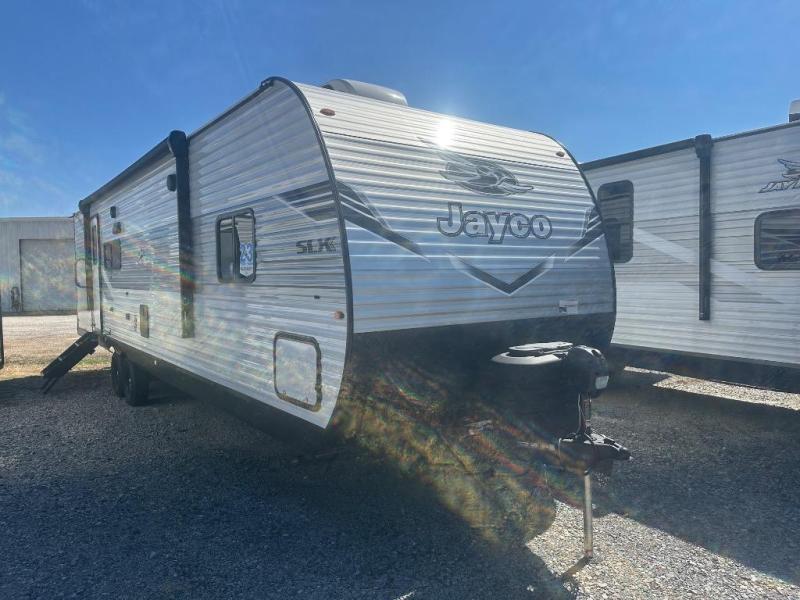 The Jayco Jay Flight SLX travel trailer is quite easy to own because it is lightweight for an easier towing experience. Built on a fully integrated A-frame with galvanized-steel, impact-resistant wheel wells, the Jay Flight SLX has quality at its very foundation. That quality continues on to the electric self-adjusting brakes, easy-lube hubs, Magnum Truss roof system, and LP quick connect. Some of what the mandatory Customer Value Package includes is backup camera prep, Keyed-Alike entry and baggage doors, and an on-demand tankless water heater.