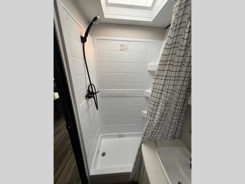 After a long day of exploring, step inside to enjoy instant hot water from the on-demand tankless water heater—up to 60,000 BTU in standard models and 42,000 BTU in the Sport Edition—so you can clean up comfortably, just like at home. Oversized G20 dark-tinted windows flood the space with natural light while blocking heat and UV rays, giving you both stunning views and added privacy.