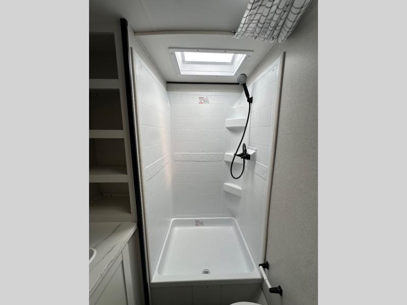 The Jayco Jay Flight SLX travel trailer is quite easy to own because it is lightweight for an easier towing experience. Built on a fully integrated A-frame with galvanized-steel, impact-resistant wheel wells, the Jay Flight SLX has quality at its very foundation. That quality continues on to the electric self-adjusting brakes, easy-lube hubs, Magnum Truss roof system, and LP quick connect. Some of what the mandatory Customer Value Package includes is backup camera prep, Keyed-Alike entry and baggage doors, marine grade exterior speakers, and an on-demand tankless water heater.