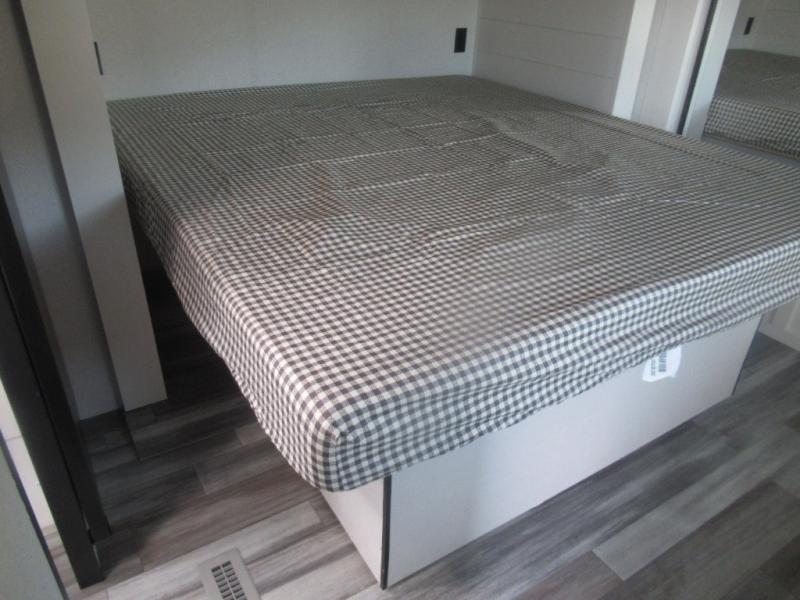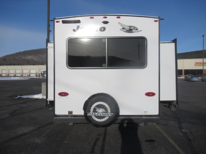 The Jayco Jay Flight SLX travel trailer is quite easy to own because it is lightweight for an easier towing experience. Built on a fully integrated A-frame with galvanized-steel, impact-resistant wheel wells, the Jay Flight SLX has quality at its very foundation. That quality continues on to the electric self-adjusting brakes, easy-lube hubs, Magnum Truss roof system, and LP quick connect. Some of what the mandatory Customer Value Package includes is backup camera prep, Keyed-Alike entry and baggage doors, and an on-demand tankless water heater.