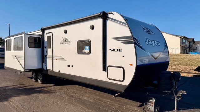 The Jayco Jay Flight SLX travel trailer is quite easy to own because it is lightweight for an easier towing experience. Built on a fully integrated A-frame with galvanized-steel, impact-resistant wheel wells, the Jay Flight SLX has quality at its very foundation. That quality continues on to the electric self-adjusting brakes, easy-lube hubs, Magnum Truss roof system, and LP quick connect. Some of what the mandatory Customer Value Package includes is backup camera prep, Keyed-Alike entry and baggage doors, and an on-demand tankless water heater.