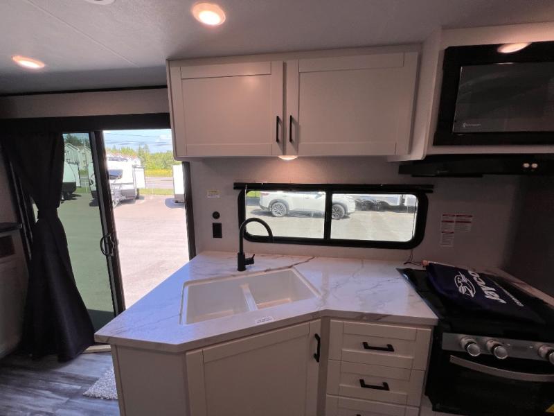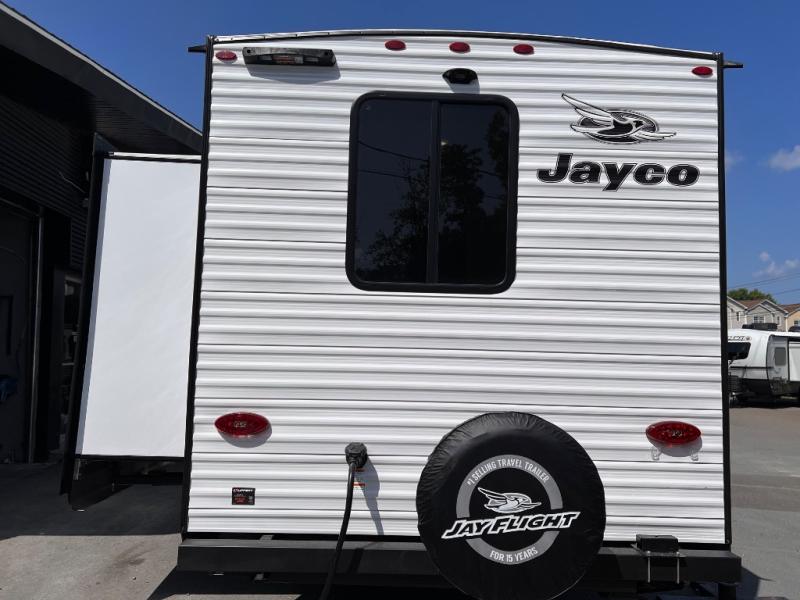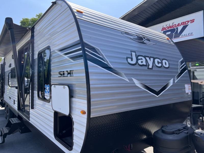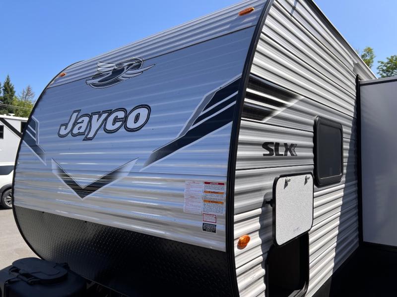 The Jayco Jay Flight SLX travel trailer is quite easy to own because it is lightweight for an easier towing experience. Built on a fully integrated A-frame with galvanized-steel, impact-resistant wheel wells, the Jay Flight SLX has quality at its very foundation. That quality continues on to the electric self-adjusting brakes, easy-lube hubs, Magnum Truss roof system, and LP quick connect. Some of what the mandatory Customer Value Package includes is backup camera prep, Keyed-Alike entry and baggage doors, and an on-demand tankless water heater.