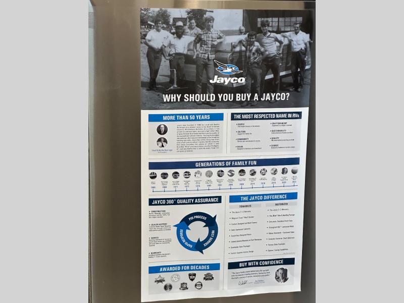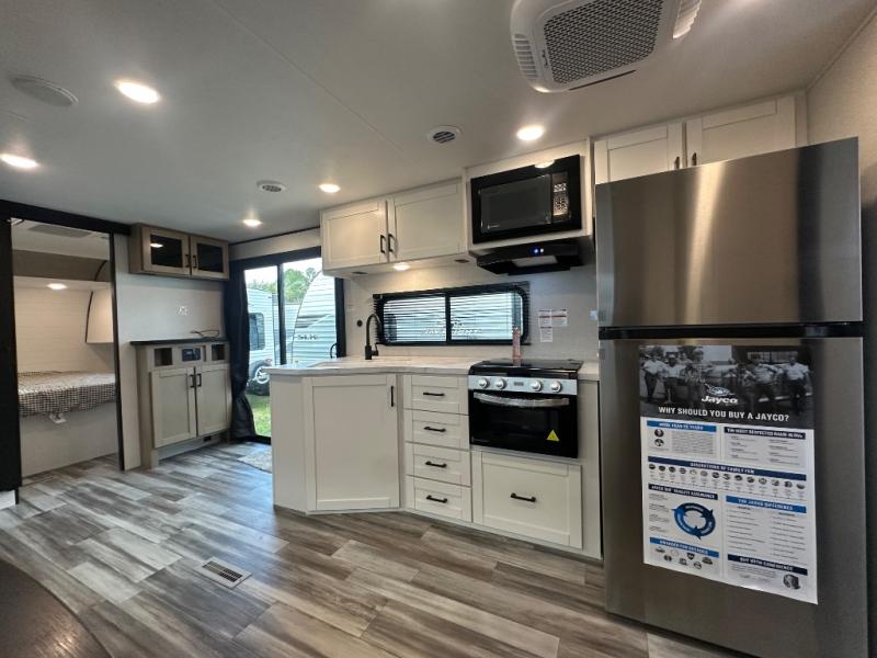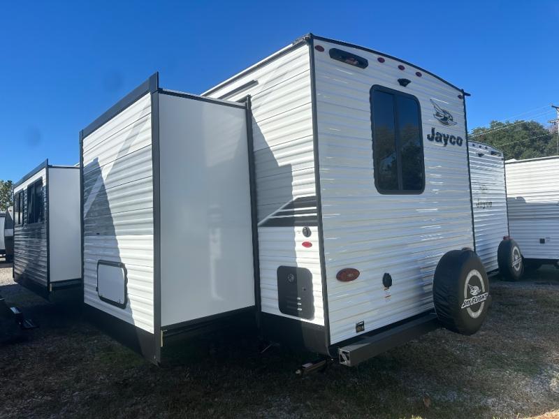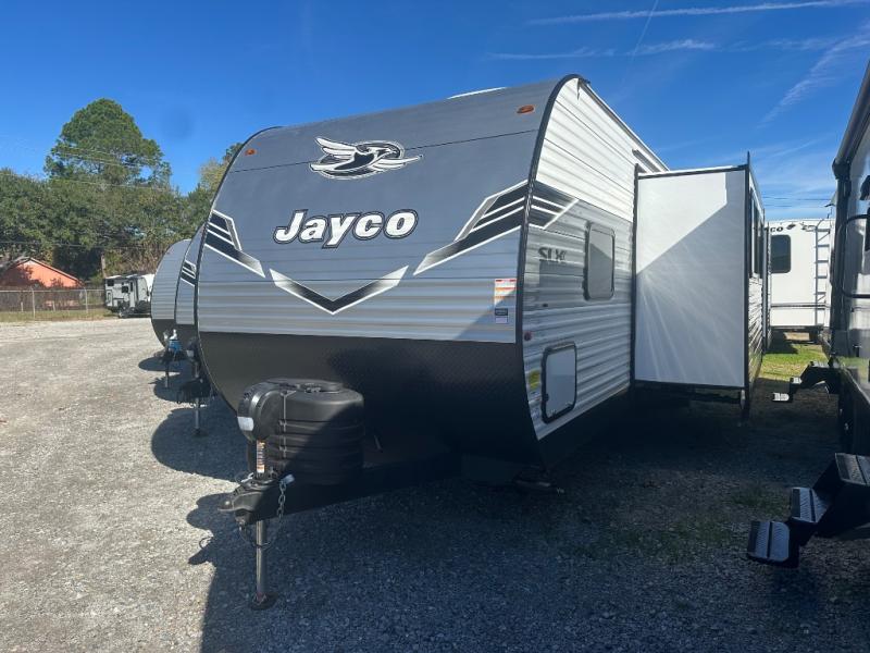 The Jayco Jay Flight SLX travel trailer is quite easy to own because it is lightweight for an easier towing experience. Built on a fully integrated A-frame with galvanized-steel, impact-resistant wheel wells, the Jay Flight SLX has quality at its very foundation. That quality continues on to the electric self-adjusting brakes, easy-lube hubs, Magnum Truss roof system, and LP quick connect. Some of what the mandatory Customer Value Package includes is backup camera prep, Keyed-Alike entry and baggage doors, and an on-demand tankless water heater.