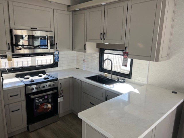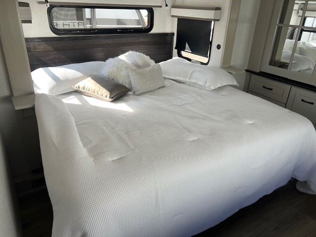With any North Point fifth wheel by Jayco you begin with a strong foundation with a custom frame, designed and sized specifically to best support each unit. Constructed with Stronghold VBL™ aluminum framed, vacuum bond laminated walls and the Magnum Truss™ XL6™ roof system with an Alpha roof membrane system, which is the strongest tested roof in the industry. The 5-Star Handling package is included with Uniroyal tires, a MORryde rubber pin box, Dexter axles with Nev-R-Adjust brakes, MORryde CRE-3000 rubberized suspension and wet bolt fasteners and bronze bushings. The interior has handcrafted hardwood glazed doors and drawers, vinyl flooring throughout, an integrated under-mount sink in the main bathroom, plus so much more you just have to see one to believe it all!